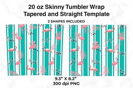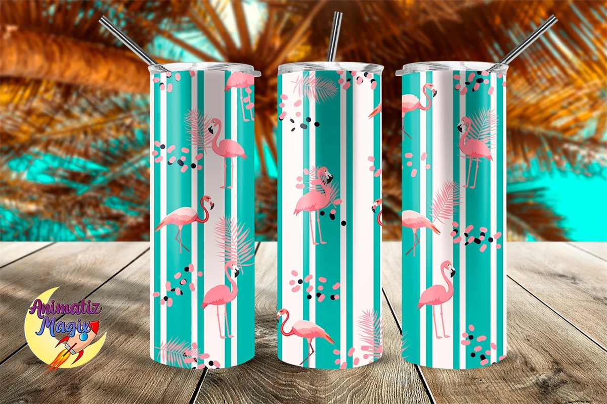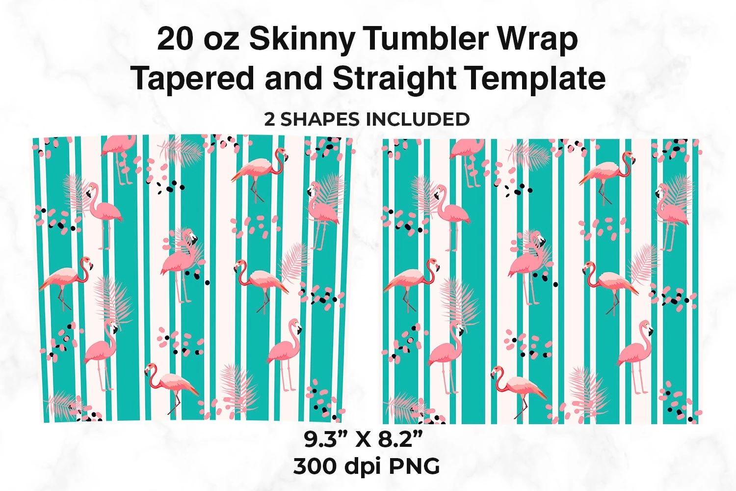 Summer Flamingos Tropical Pattern Skinny Tumbler Wrap Design