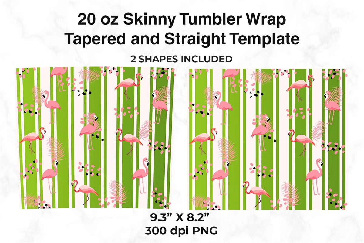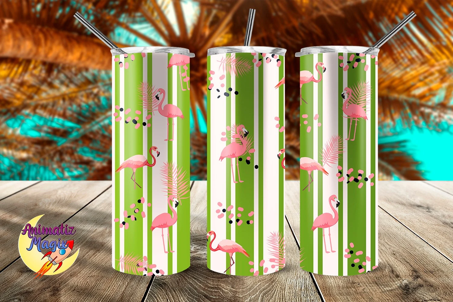 Summer Flamingos Tropical Pattern Tumbler Wrap Green Stripes