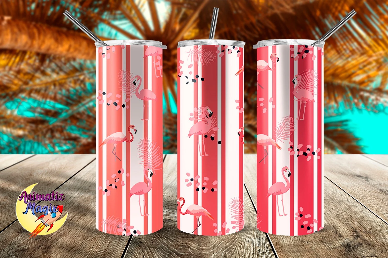 Summer Flamingos Tropical Pattern Tumbler Wrap Pink Stripes