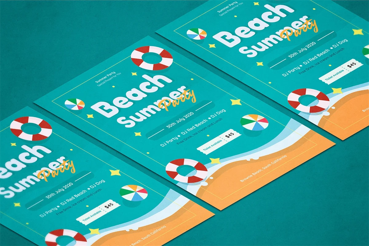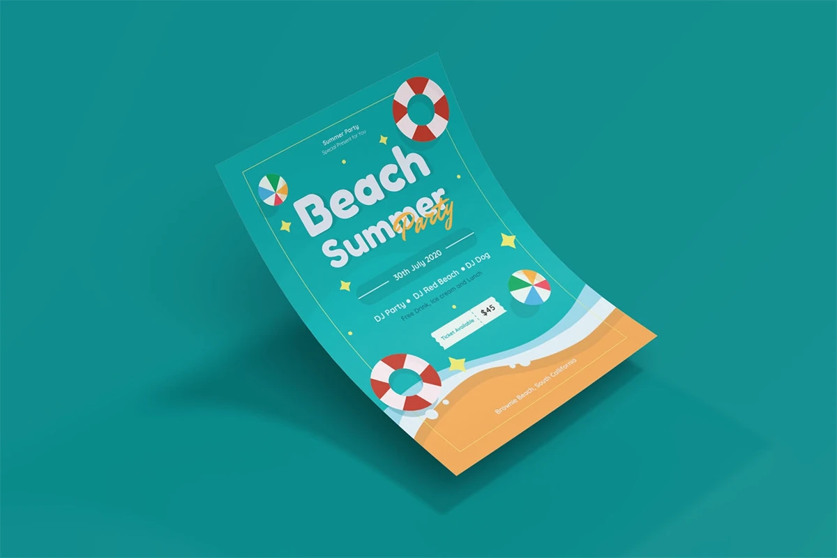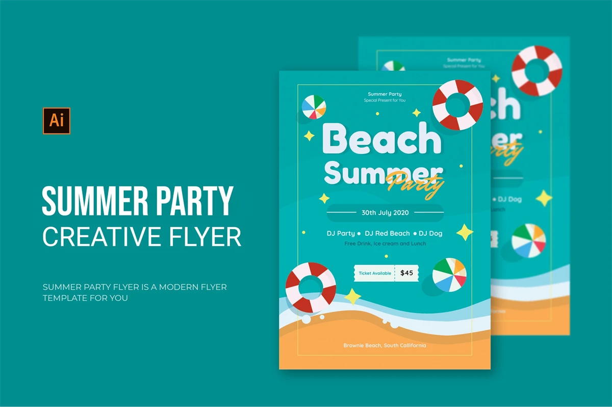 Summer Party - Flyer. This Flyer template is designed for your company's business needs. very clean and elegant, and also easily edited and adjusted to your liking