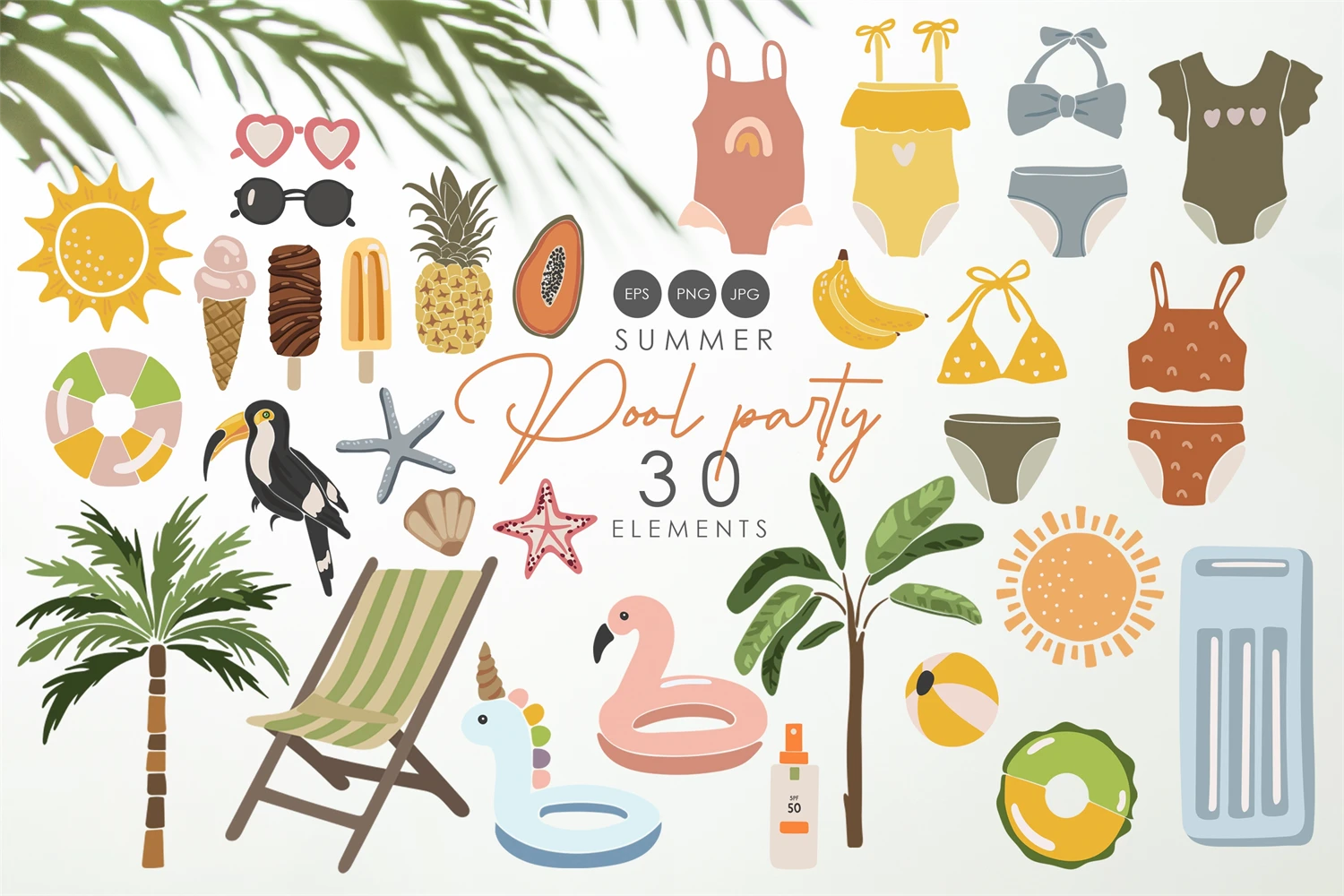 Summer pool party clipart, Summer items collection, Digital summer clipart, Abstract pool clipart, Pool party clipart