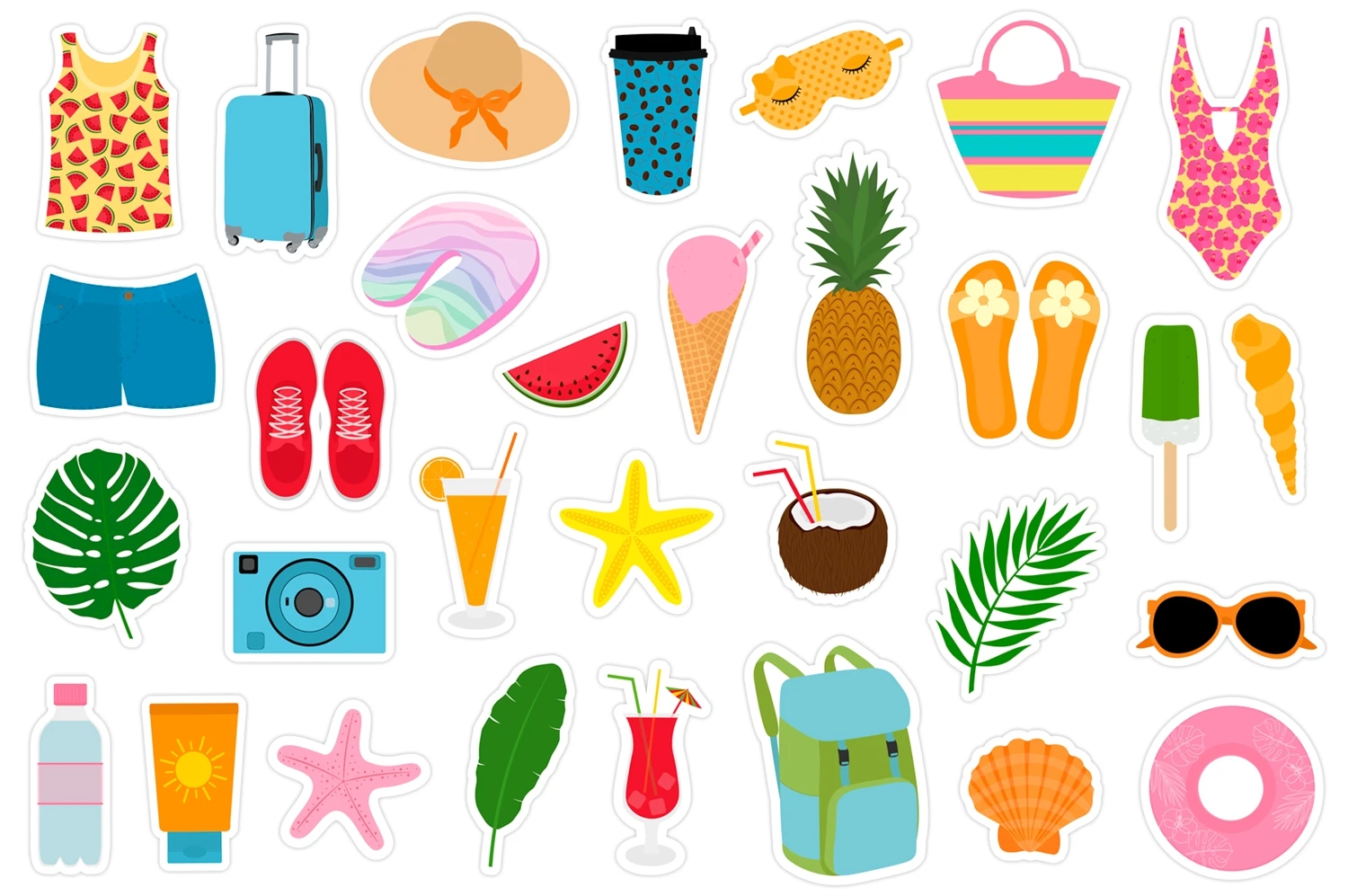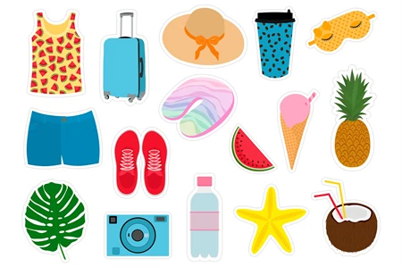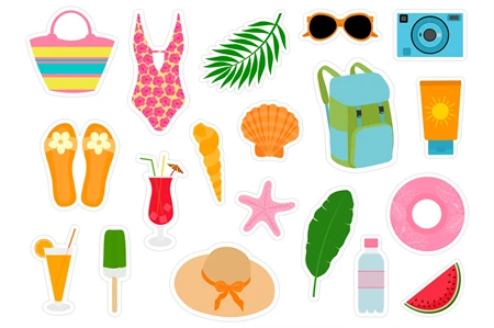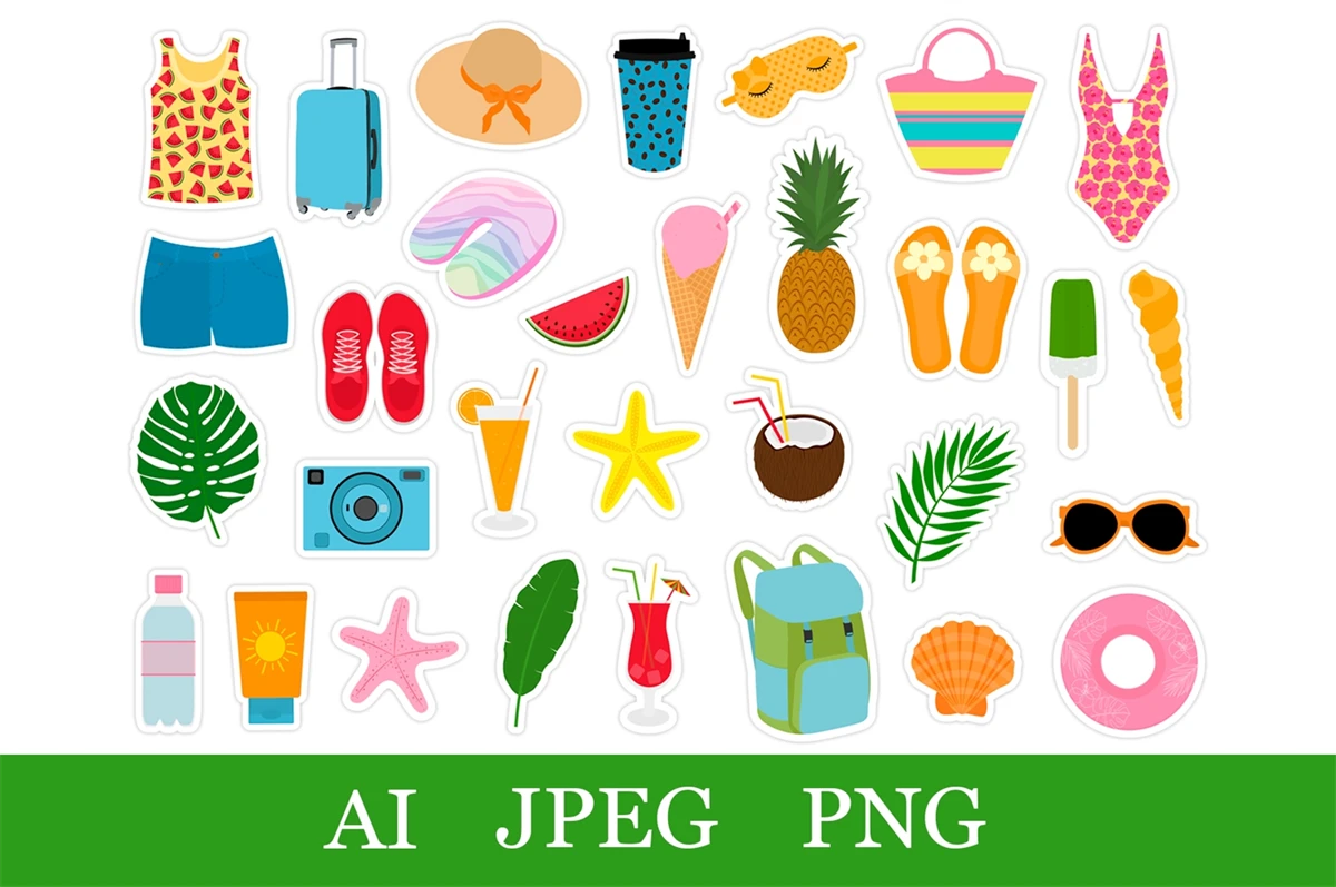 Bundle of 31 Printable Summer stickers.
