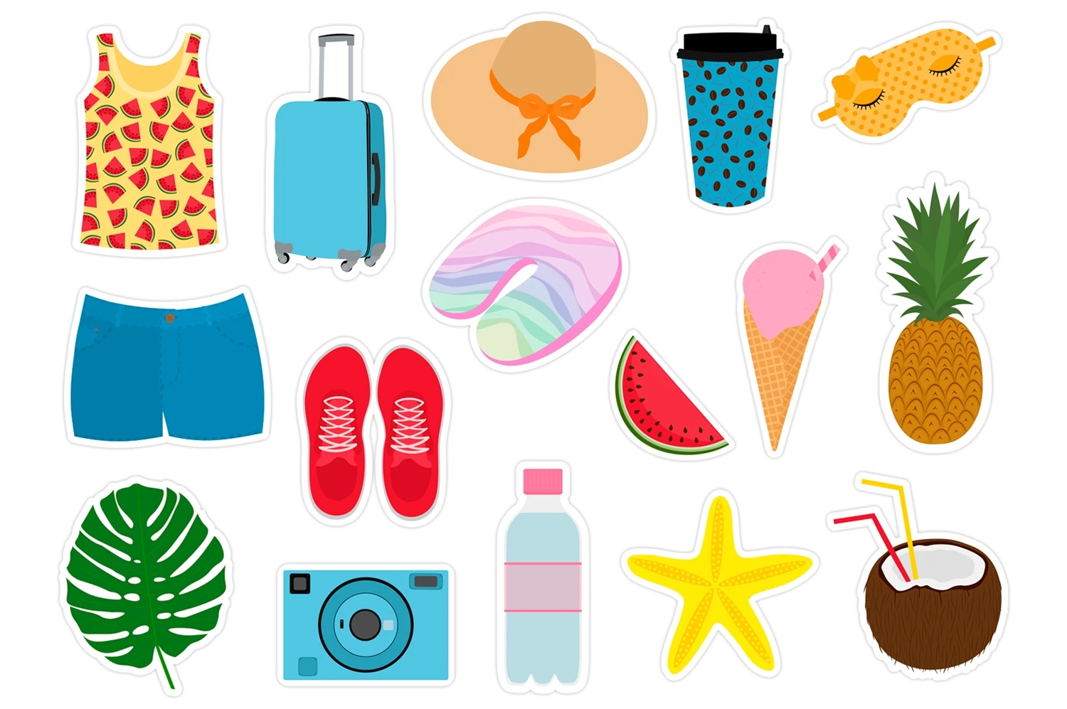 Summer stickers PNG. Sea stickers printable. Travel stickers