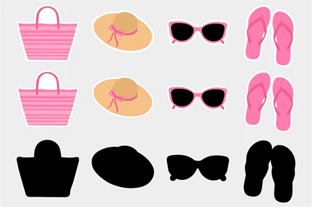 - 28 individual JPG approx 5 inches in size, white boarders, thin gray line for hand cut with scissors, 300 dpi