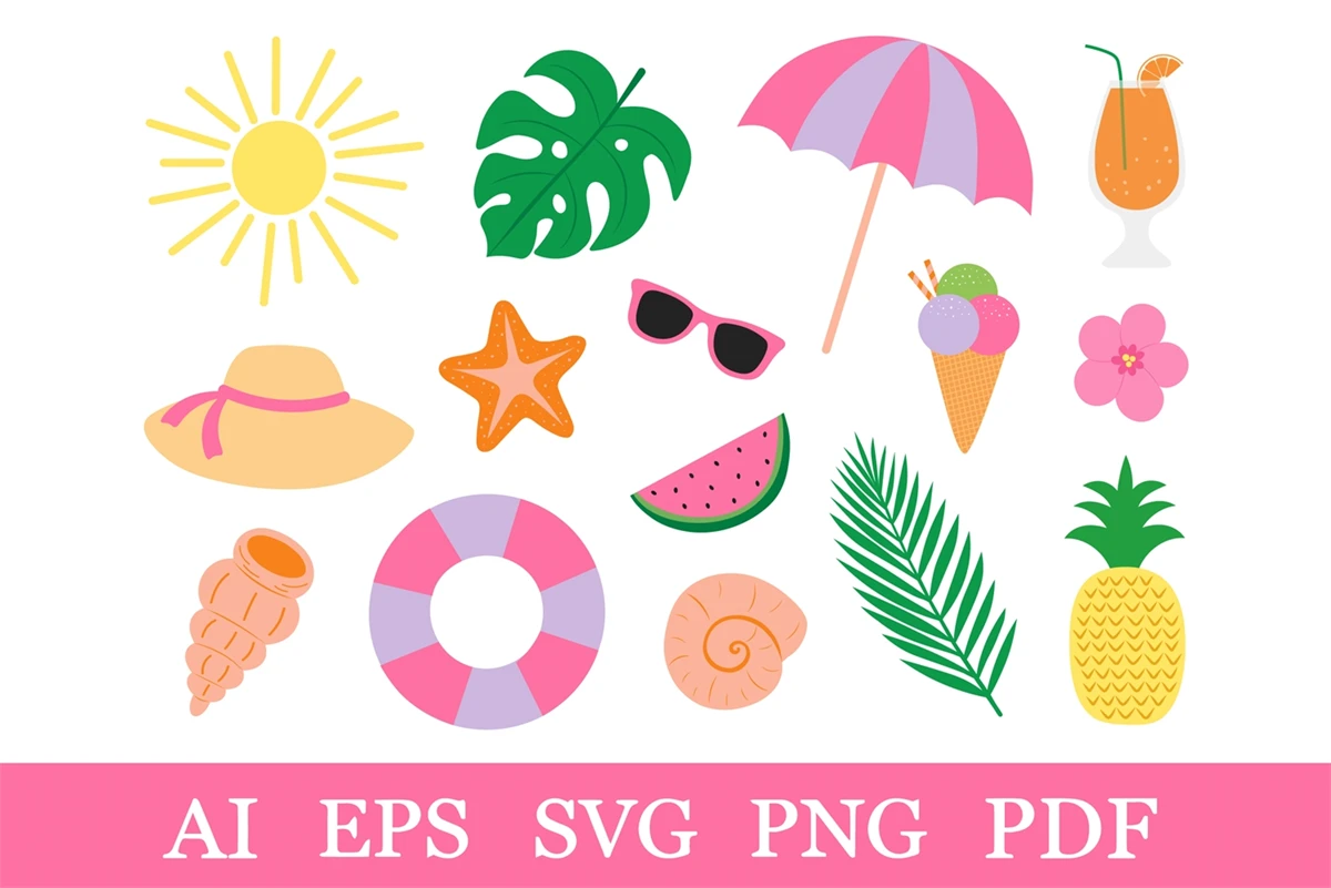 Summer SVG. Beach holiday. Sea shell starfish coral graphic
