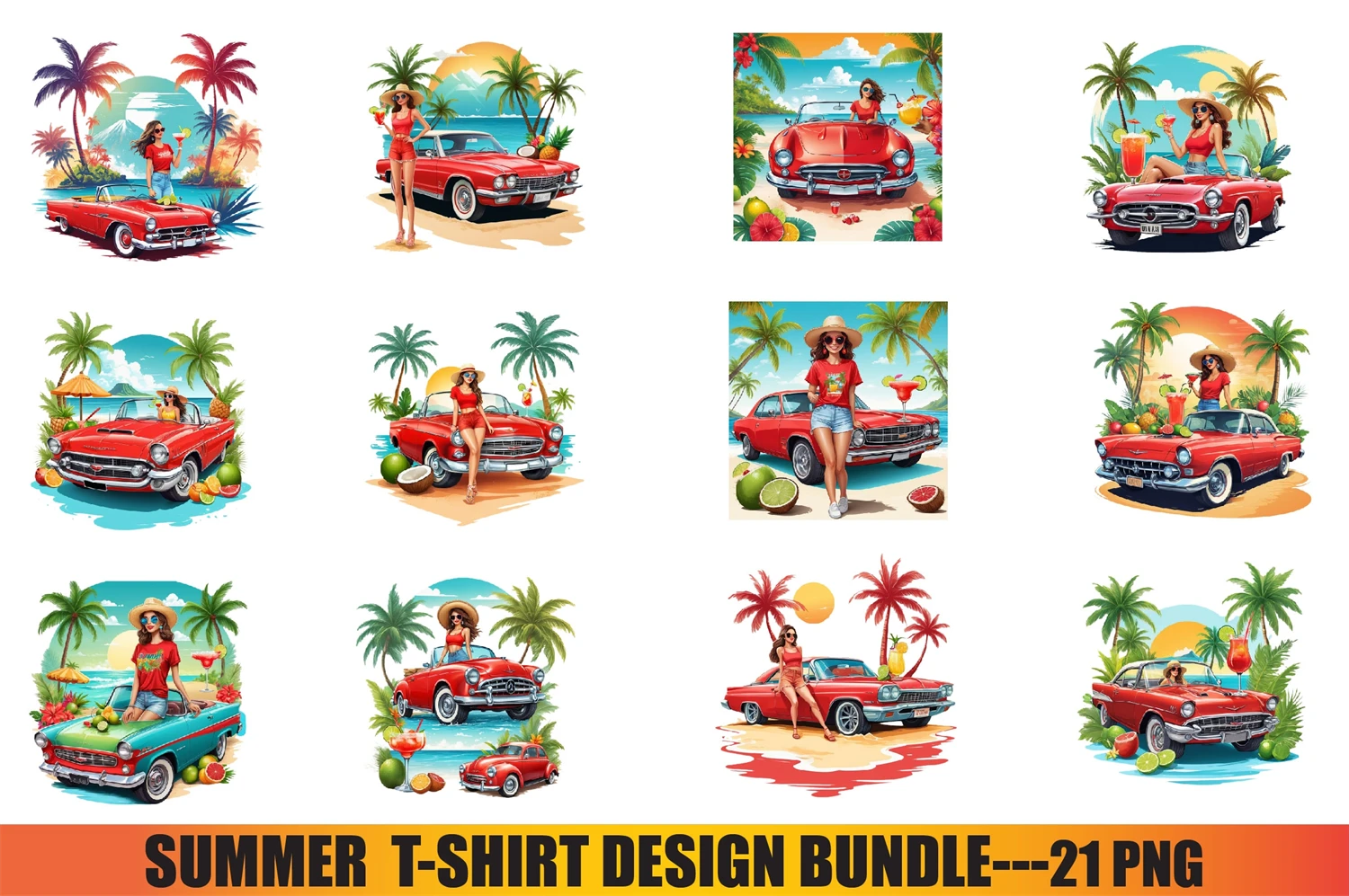Summer T-Shirt Design Bundle digital download cutting file for Circuit And Silhouette