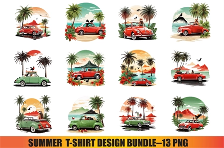 Summer Clipart T-Shirt Design Bundle digital download cutting file for Circuit And Silhouette