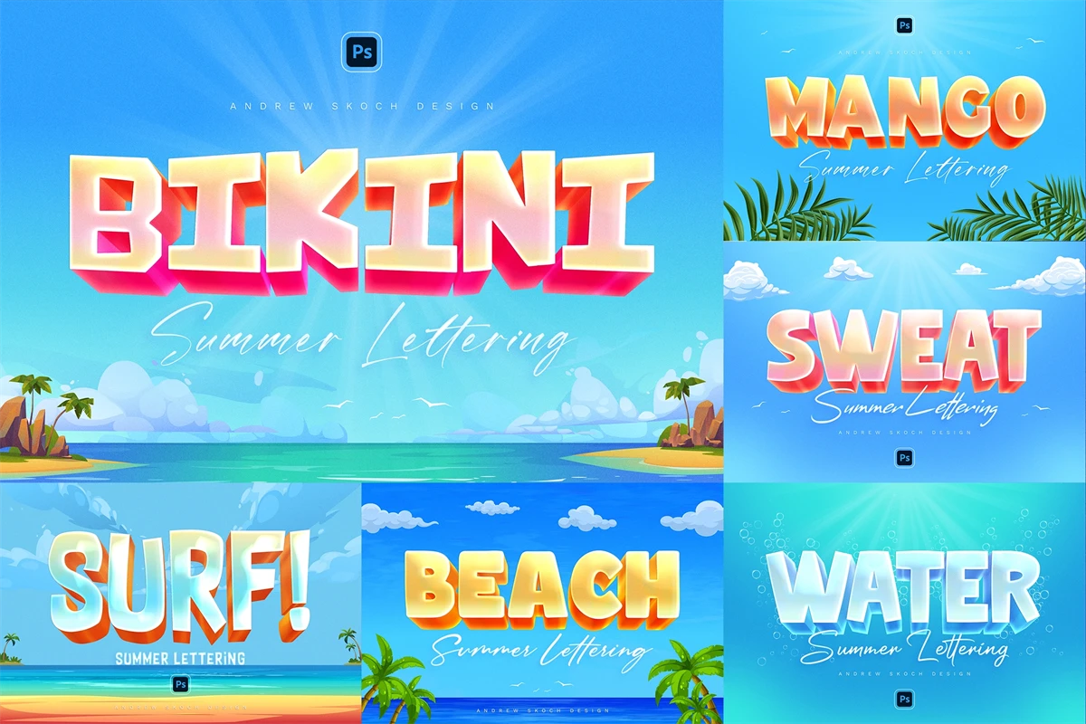 Juicy watermelon letters, magic bubble lettering, fresh 3D text effect, sunny sunset and more!
