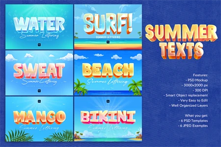 Get 6 Photoshop templates with colorful, bright and juicy text effects.