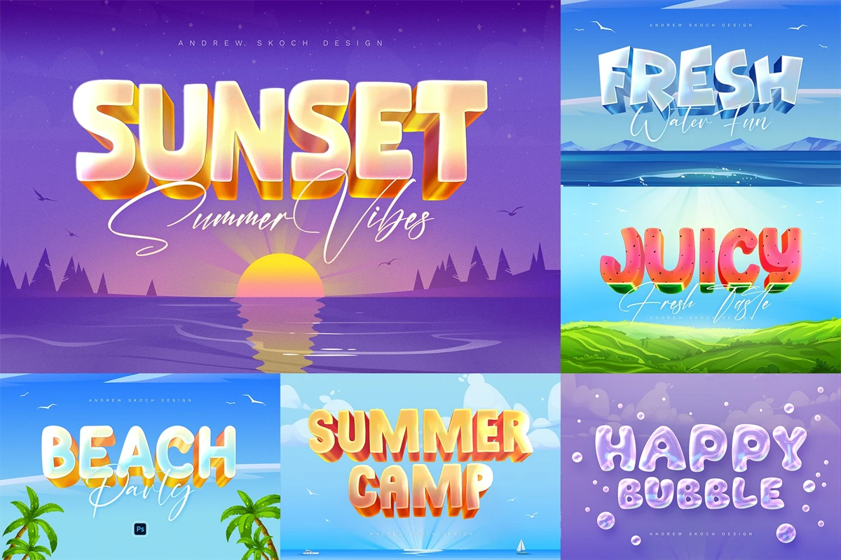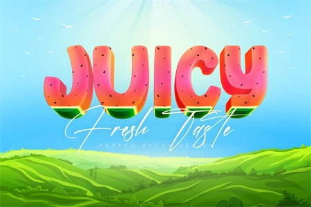 Juicy watermelon letters, magic bubble lettering, fresh 3D text effect, sunny sunset and more!
