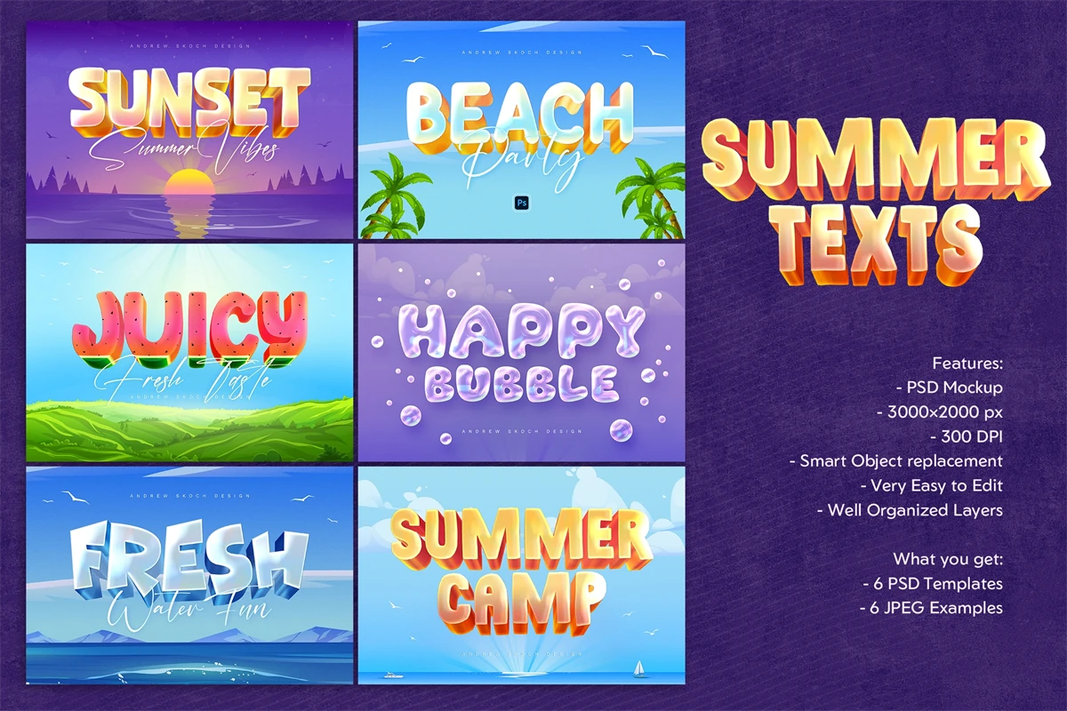 Get 6 Photoshop templates with colorful, bright and juicy text effects.