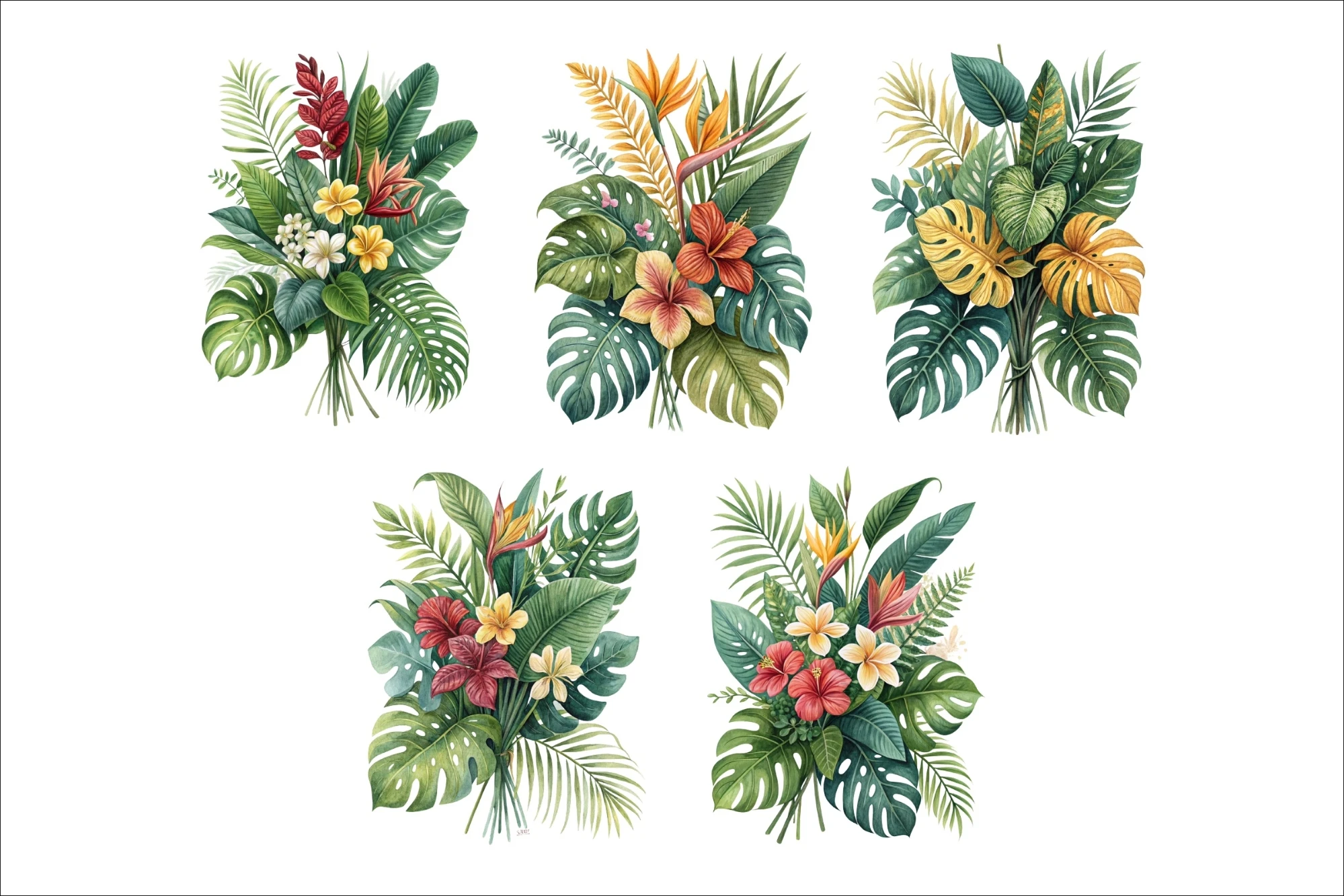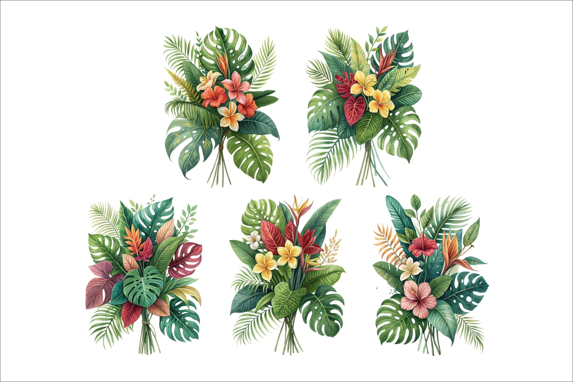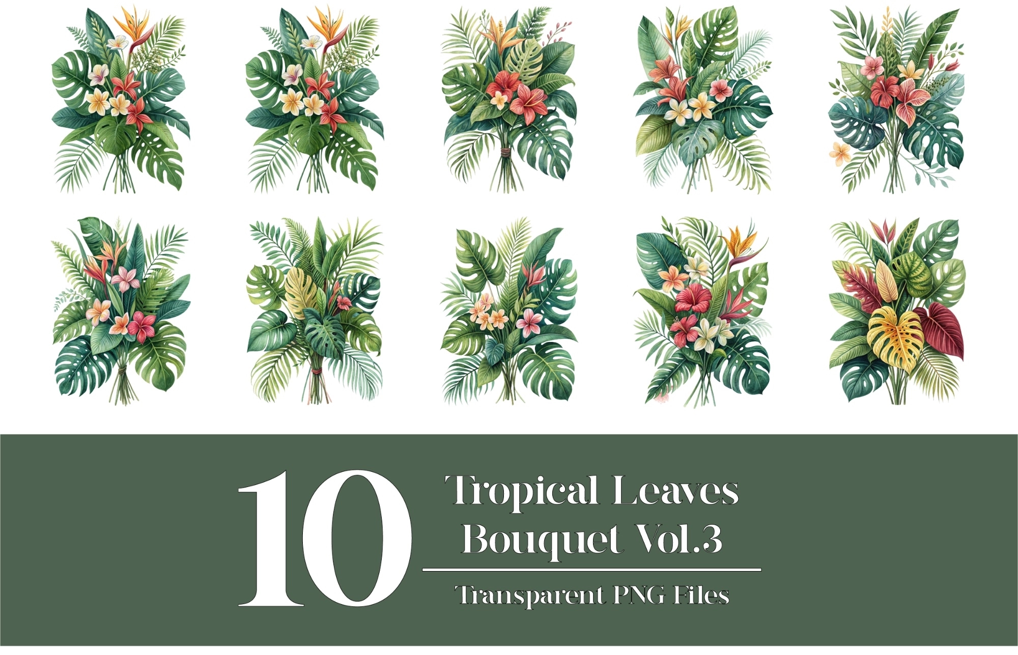 Summer Tropical Leaves Clip Art PNG, Front & Back T-shirt Design, Hoodie, Sweatshirts, Etc
