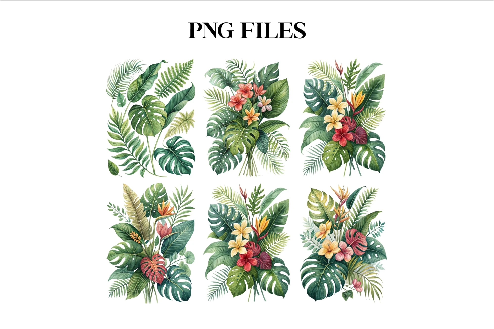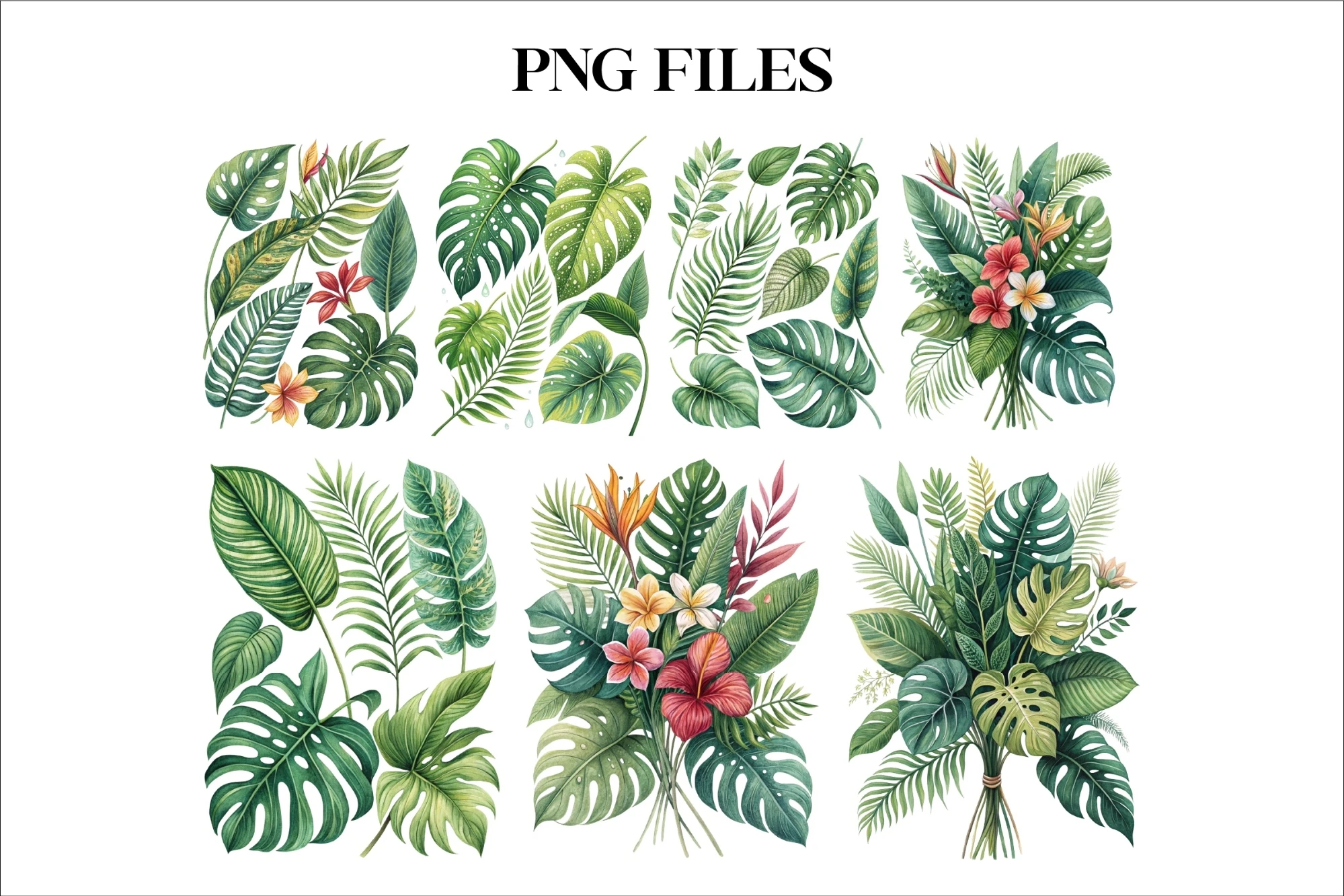 Summer Tropical Leaves Clip Art PNG, Front & Back T-shirt Design, Hoodie, Sweatshirts, Etc