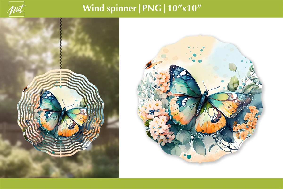 Charming green butterfly wind spinner sublimation designs for decoration of your outdoor space.