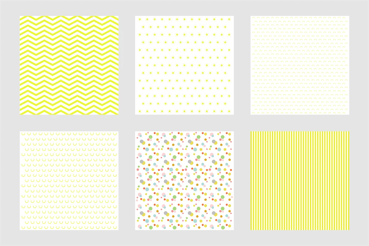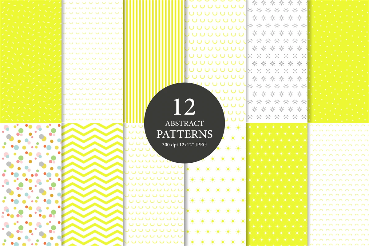 Modern Digital Paper Set, Seamless Textures, Summer Yellow Print 12 JPEG 300dpi 12x12 inches, Printable Paper, Pastel Patterns