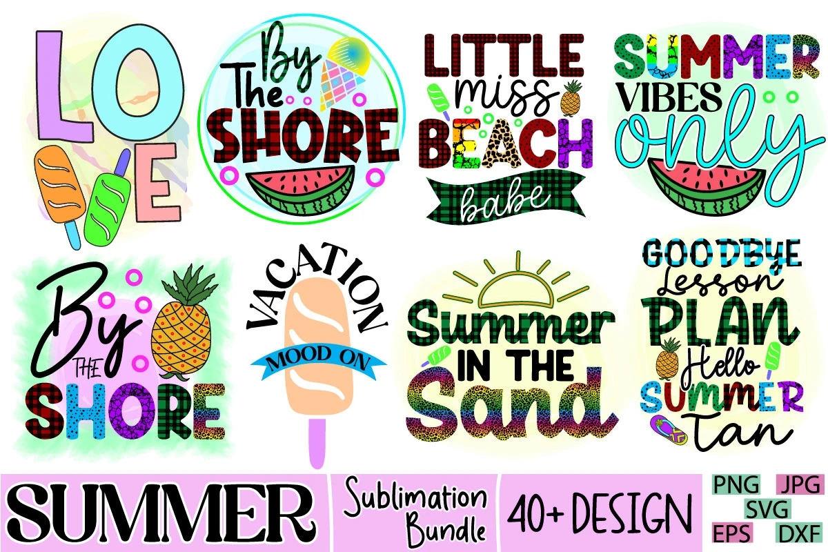 Summer Typography Craft T-shirt Sublimation Bundle