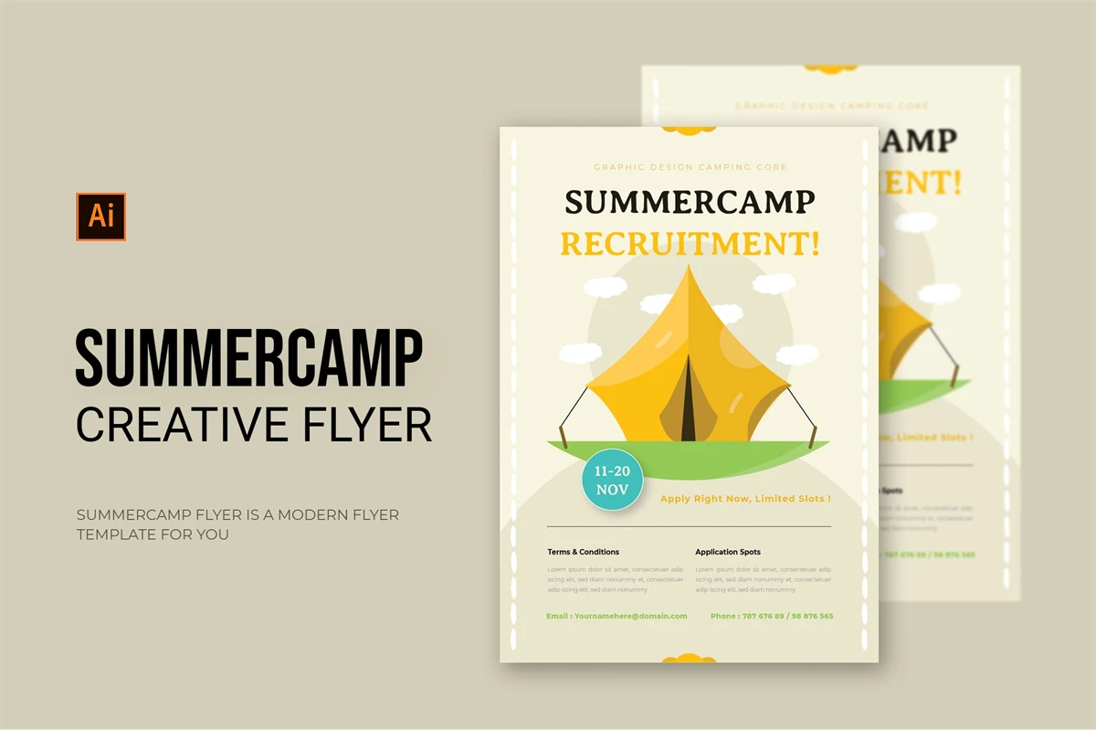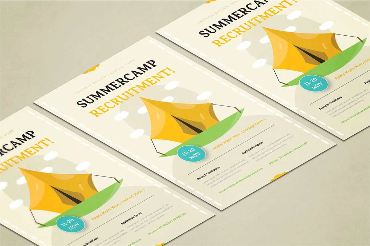 Summercamp - Flyer. This Flyer template is designed for your company's business needs. very clean and elegant, and also easily edited and adjusted to your liking