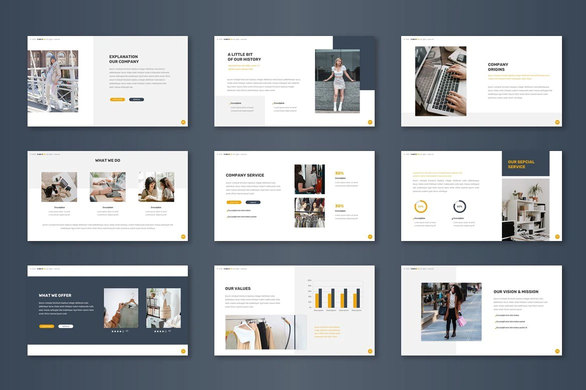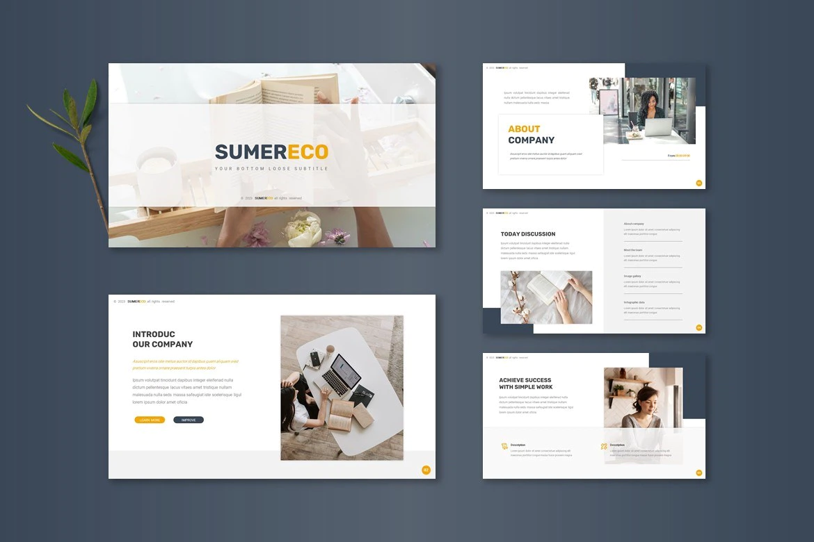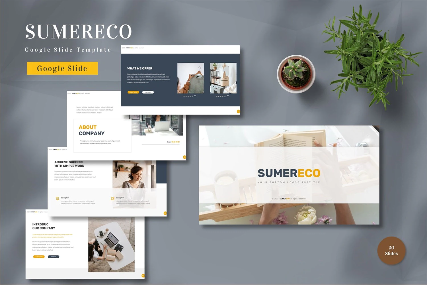 Get it now! **Sumreco - Google Slide Template** for All Business and Personal Needs All elements on this template are editable; input your content, replace your image with a placeholder, change the color, and all presentations include an animated slide to present your slides.