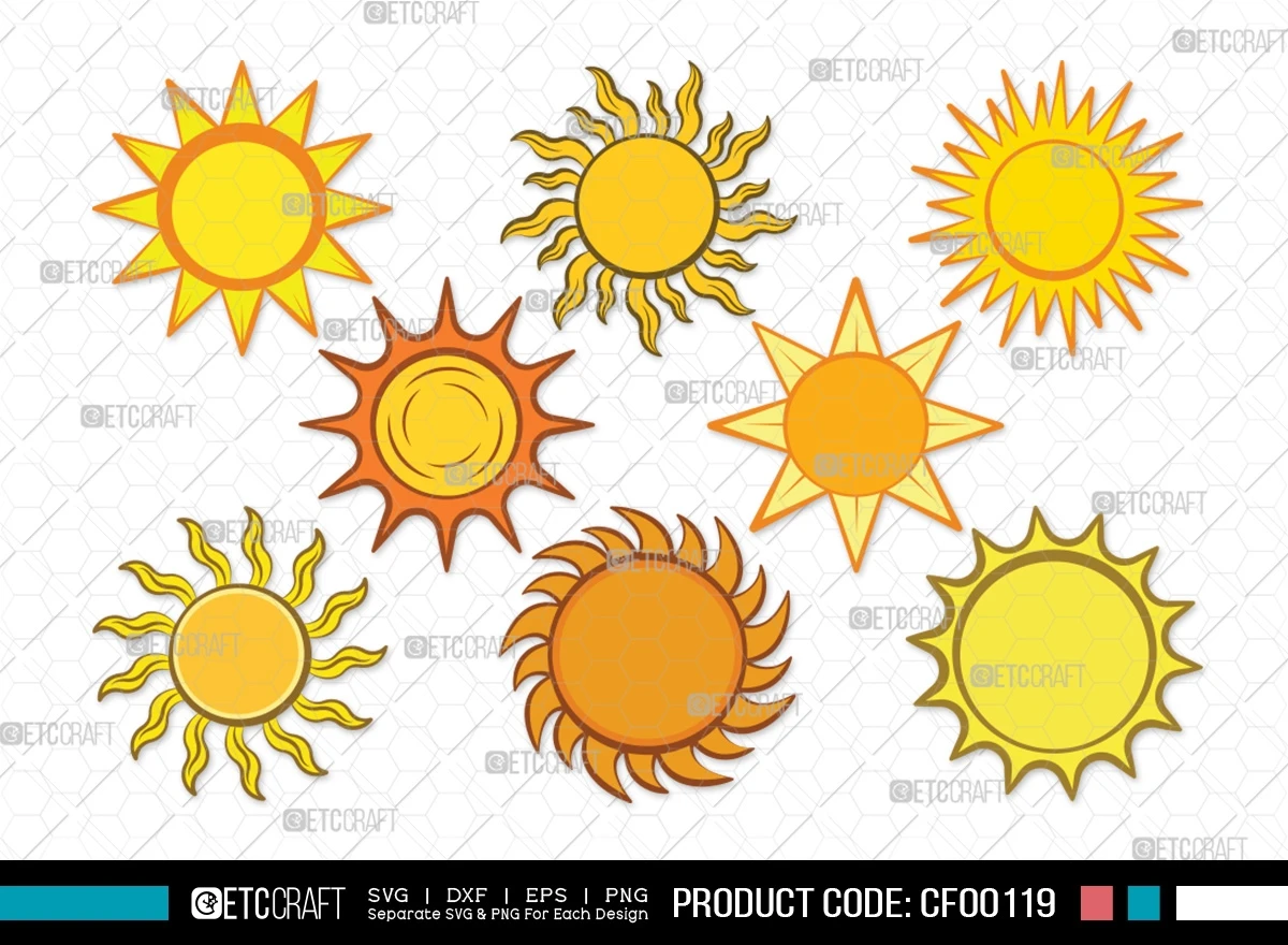 Let the sunshine brighten your creativity with our Sun Clipart Cute Sunshine Light SVG Cut File Bundle. Allow these adorable sun designs to inspire your crafting journey and bring the light of creativity to your projects. Feel the warmth of creativity today!