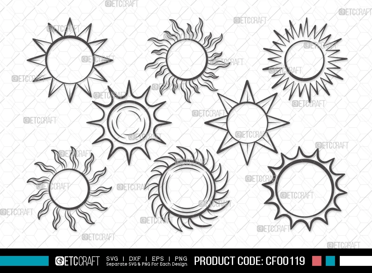 Illuminate your creative projects with the joyful glow of our Sun Outline Cute Sunshine Light SVG Cut File Bundle. This collection features a delightful array of sun-themed clipart in charming outlines, allowing you to spread the warmth and happiness of sunshine in your crafts. Let your creativity shine bright!