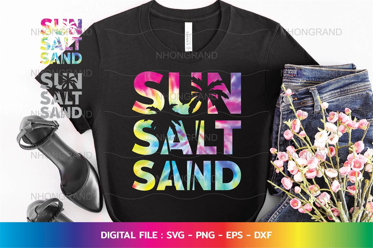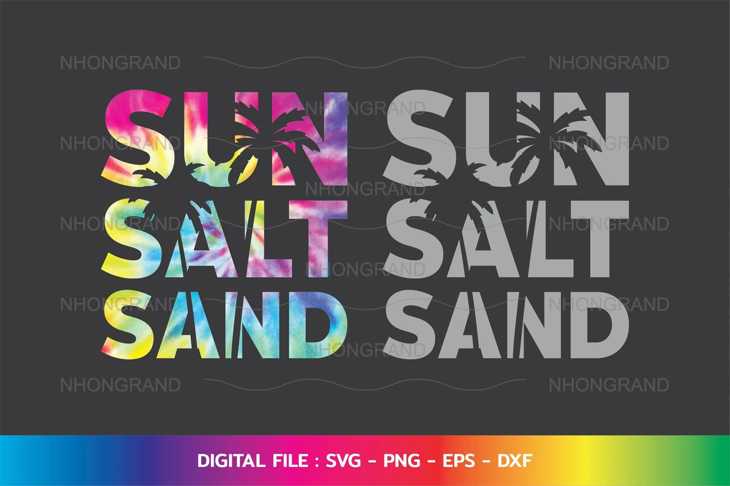 sun salt sand with coconut beach for summer vacation tie dye style Svg, t-shirt, Cricut Files, svg, png, eps, dxf, Instant Download
