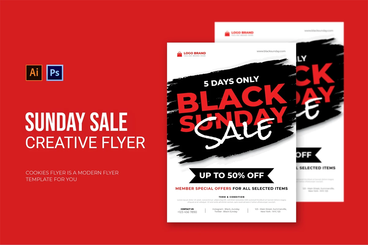 Sunday Sale - Flyer. This Flyer template is designed for your company's business needs. very clean and elegant, and also easily edited and adjusted to your liking