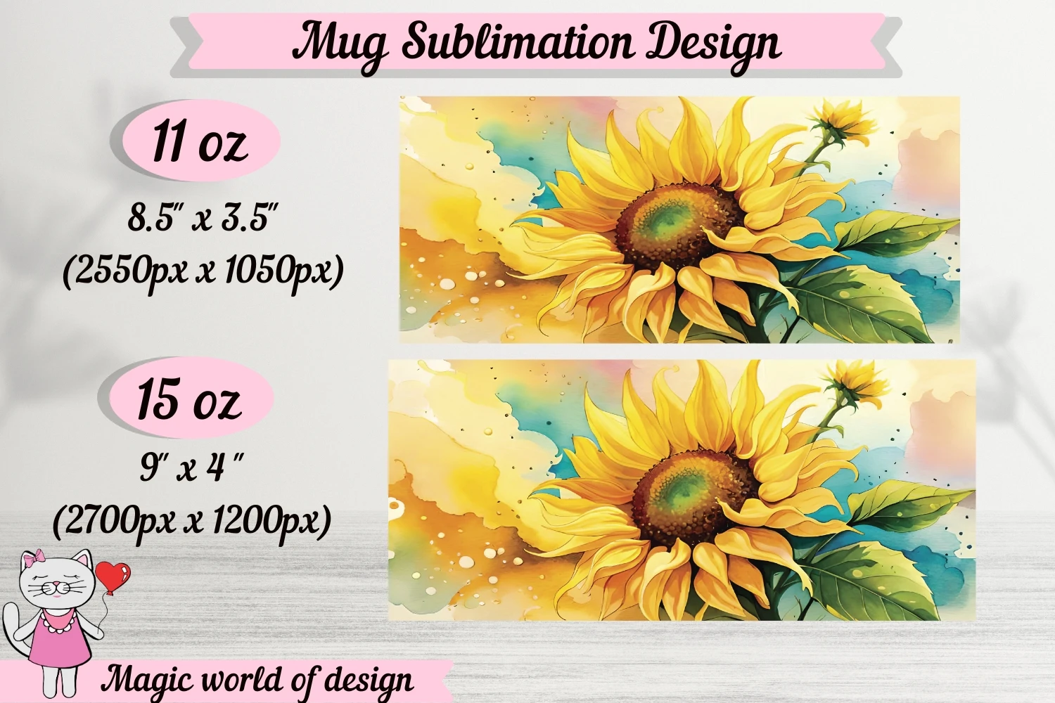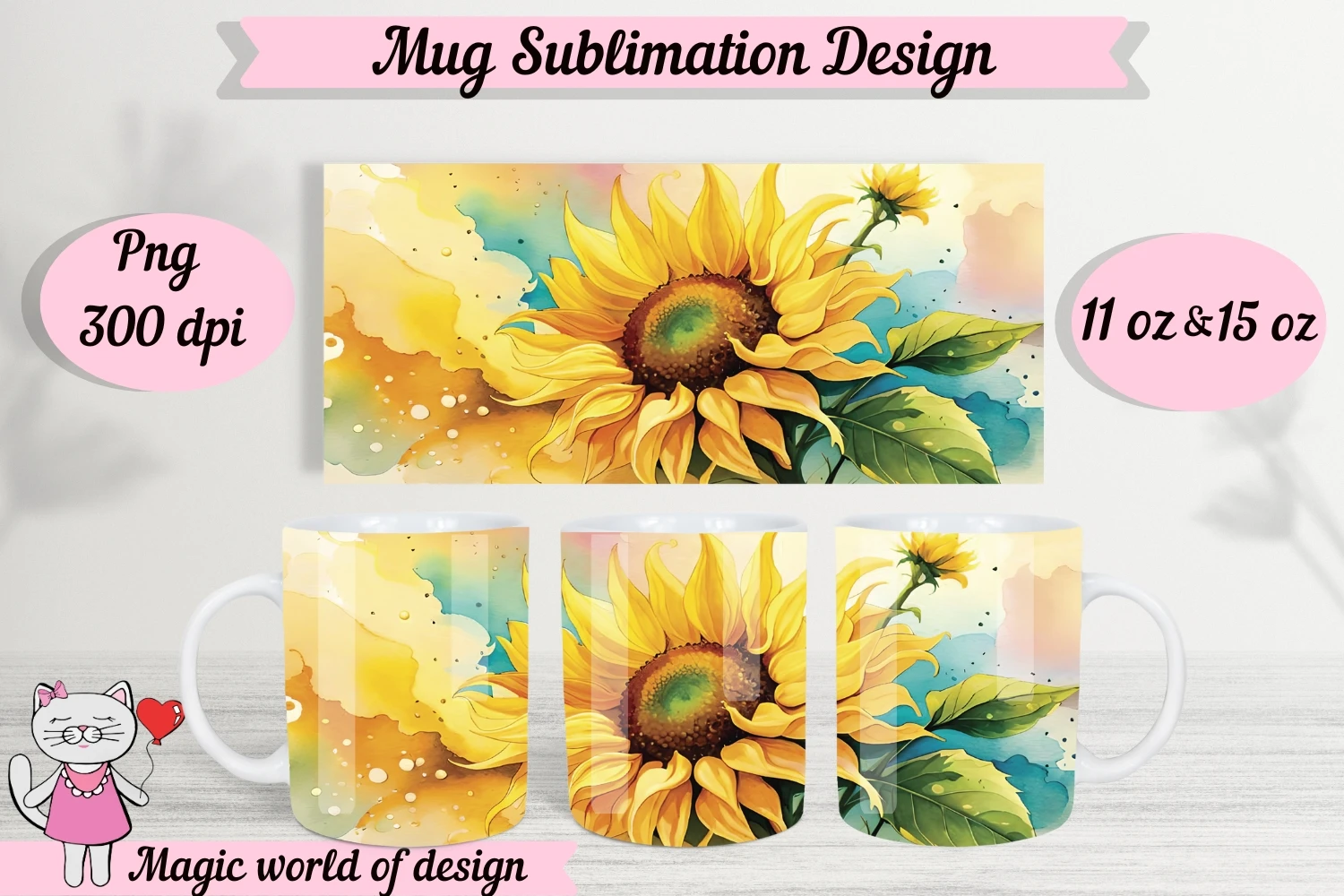 Sunflower Design mug template PNG