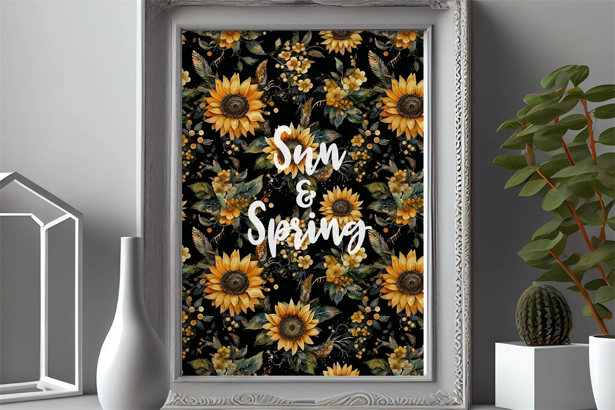 Sunflowers Digital Papers Vintage Floral Seamless Patterns for wallpaper, background, and more.