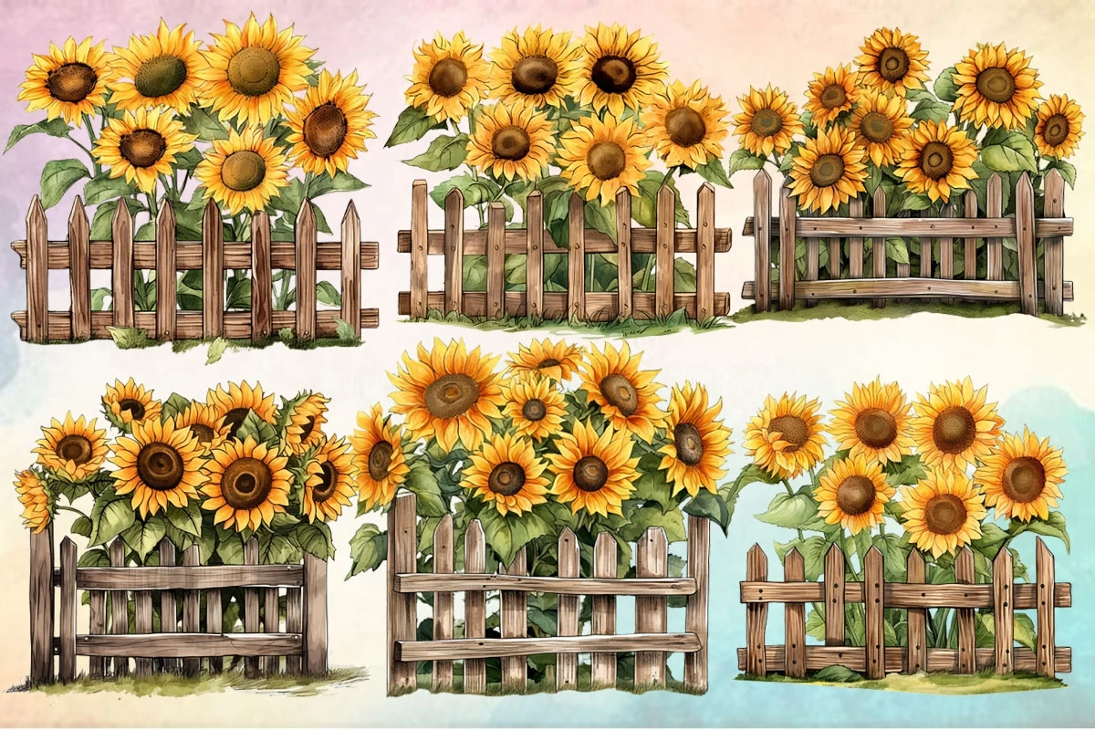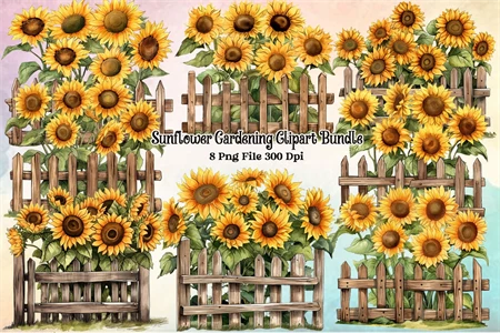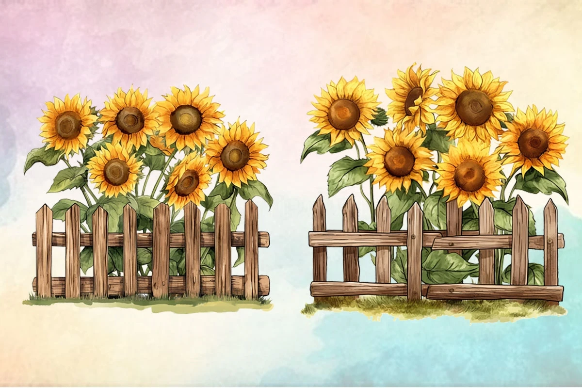 Sunflower On Fence Sublimation Clipart