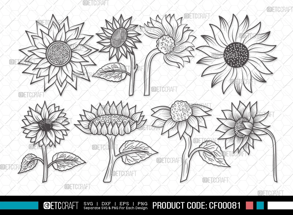 Bring the sunshine into your creative projects with our "Sunflower Outline Floral Summer" SVG Cut File Bundle. These captivating sunflower outlines embody the spirit of summer, allowing you to infuse your designs with the radiant energy of this vibrant season.