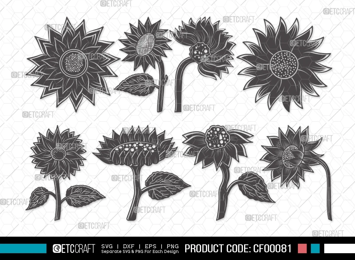 Unleash the vibrant spirit of summer with our "Sunflower Silhouette Floral Summer" SVG Cut File Bundle. This collection of sunflower silhouettes embodies the essence of the sunny season, allowing you to infuse your projects with its radiance and beauty.