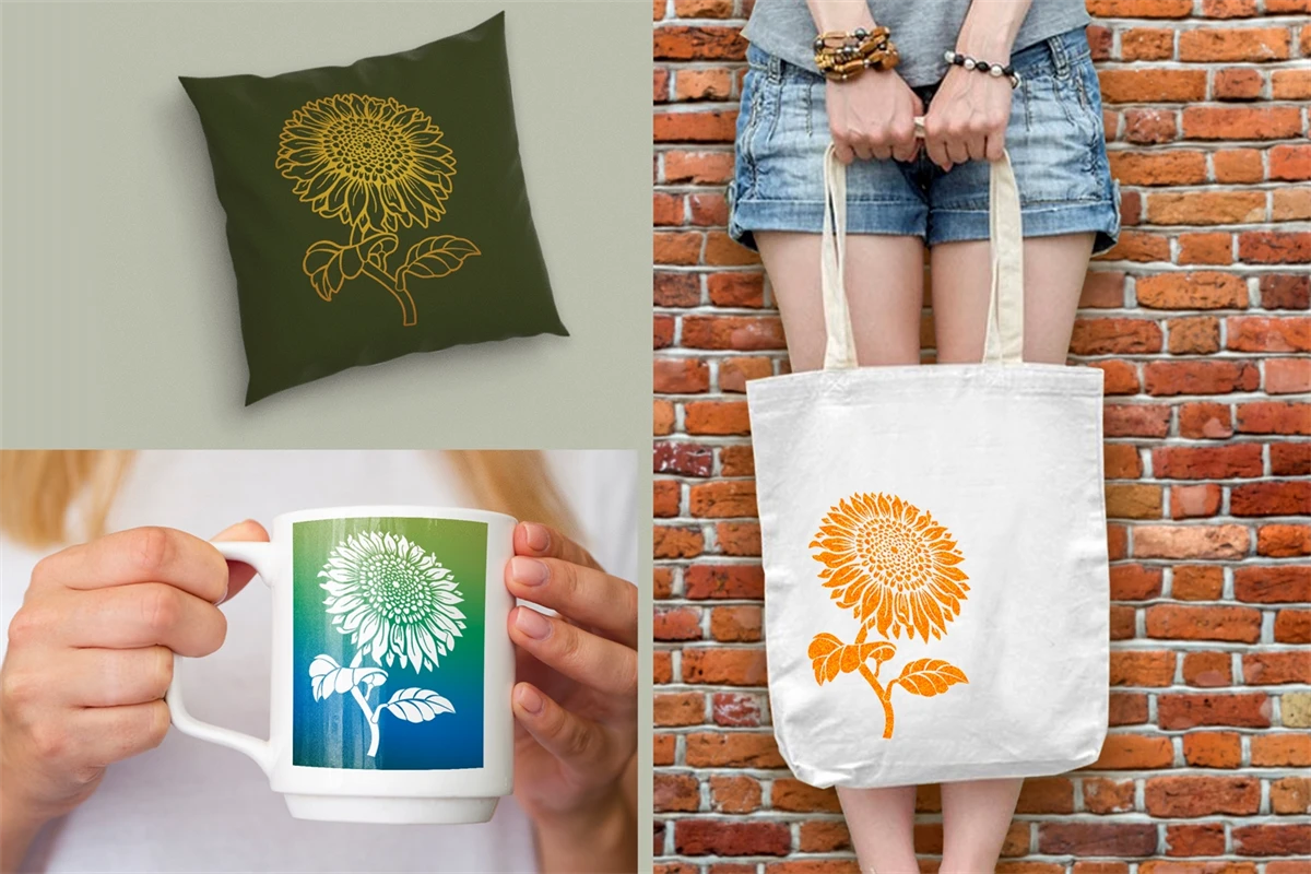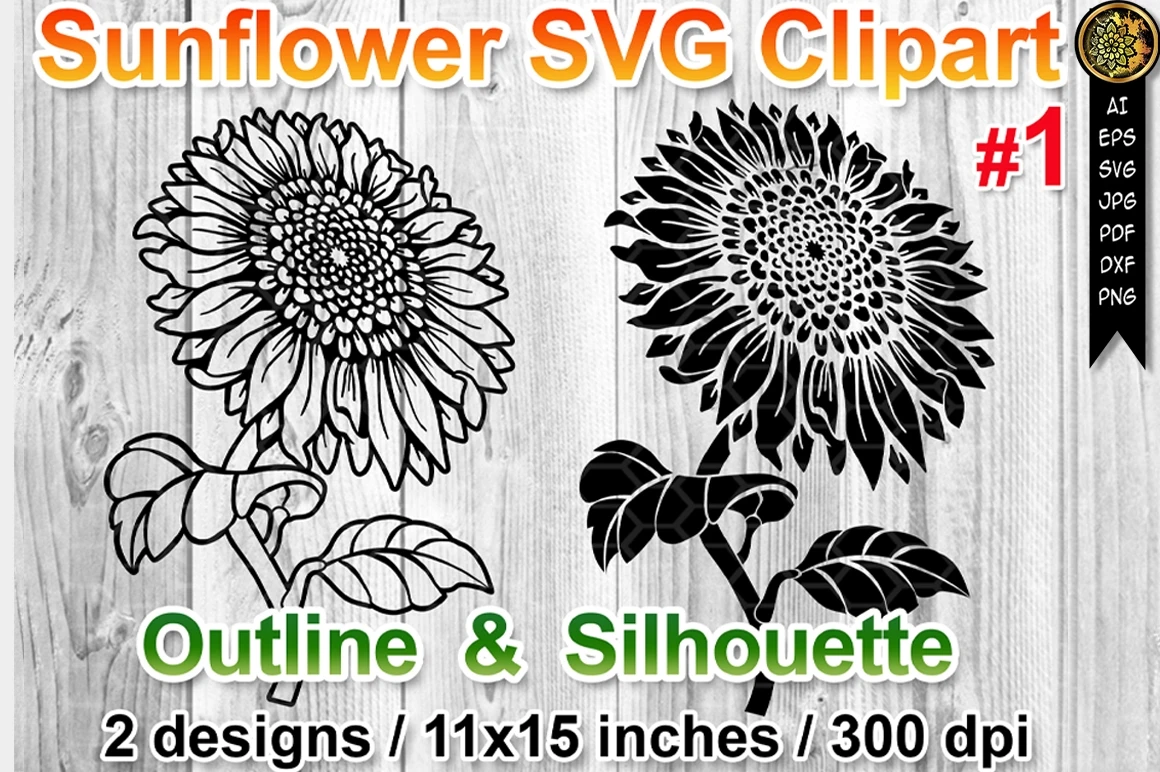 Sunflower SVG Clipart V-1 Silhouette & Outline, 2 Versions in 1.