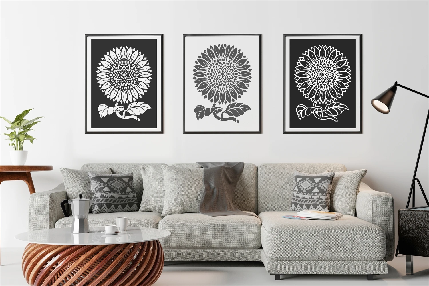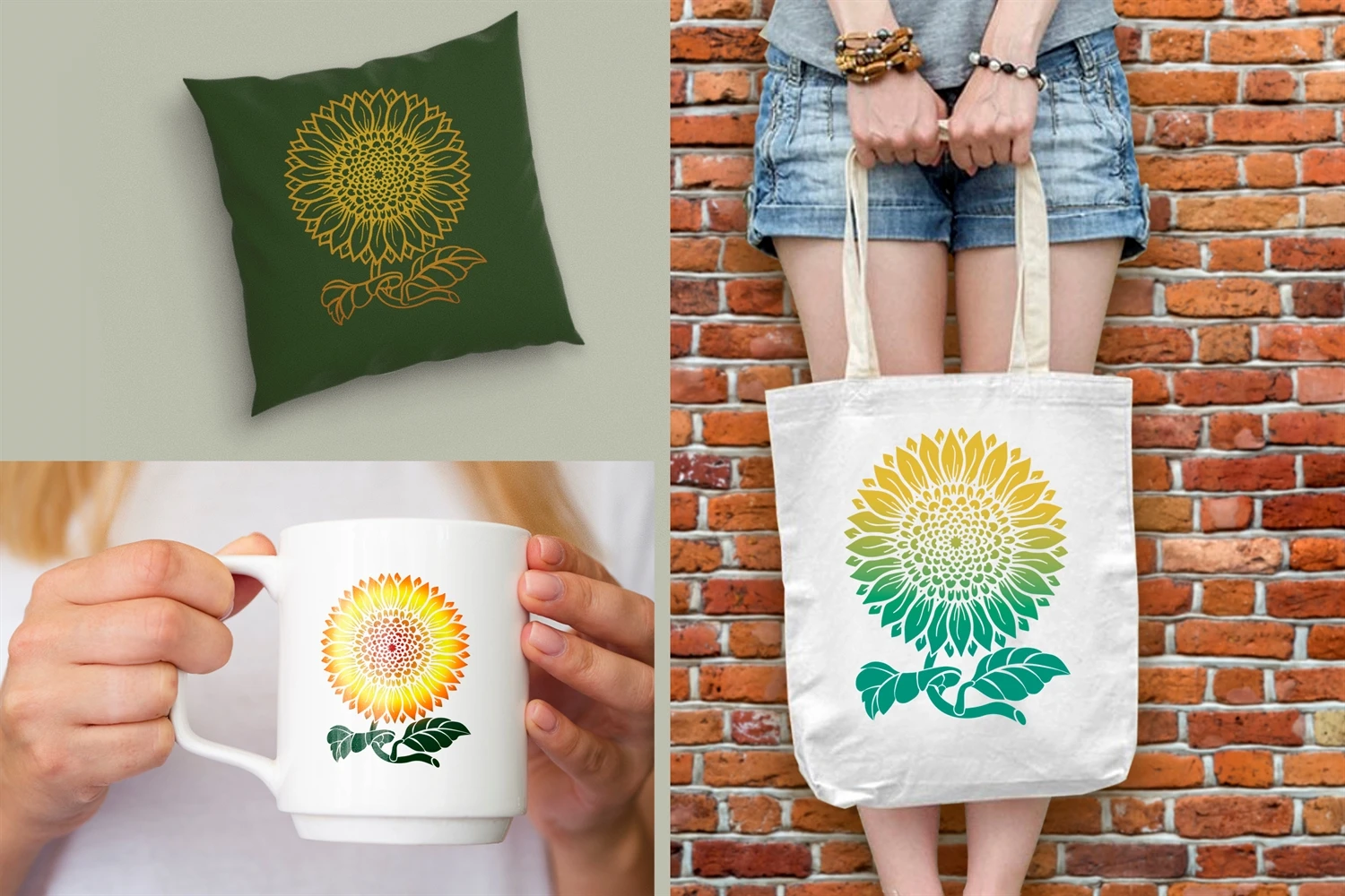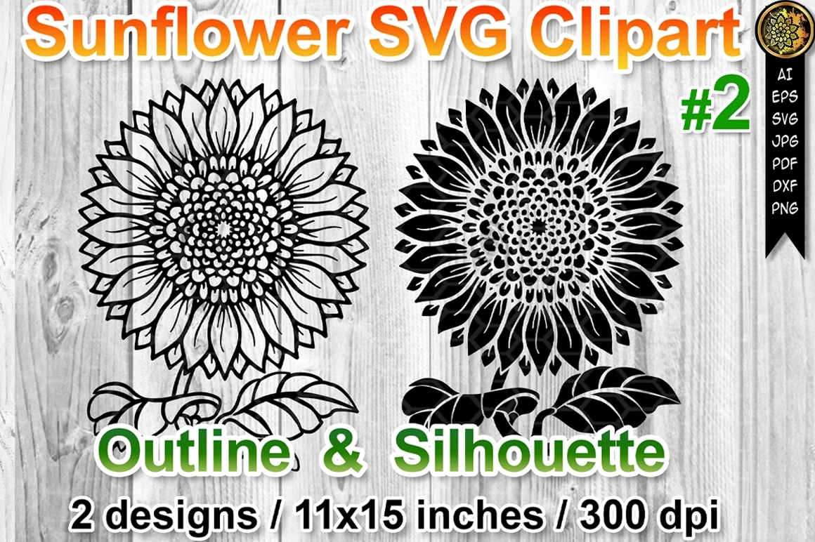 Sunflower SVG Clipart V-2 Silhouette & Outline, 2 Versions in 1.