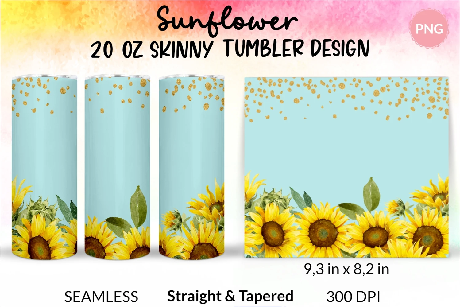 Sunflower Tumbler Wrap Floral Sublimation Design 20 Oz Png