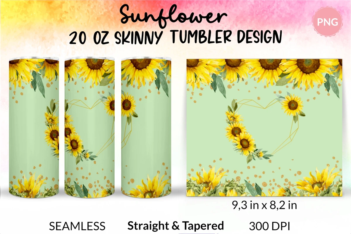 Sunflower Tumbler Wrap Floral Sublimation Design 20 Oz Png