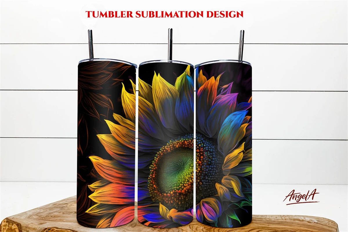 20 oz skinny tumbler wrap sublimation design is rainbow sunflower tumbler sublimation design.