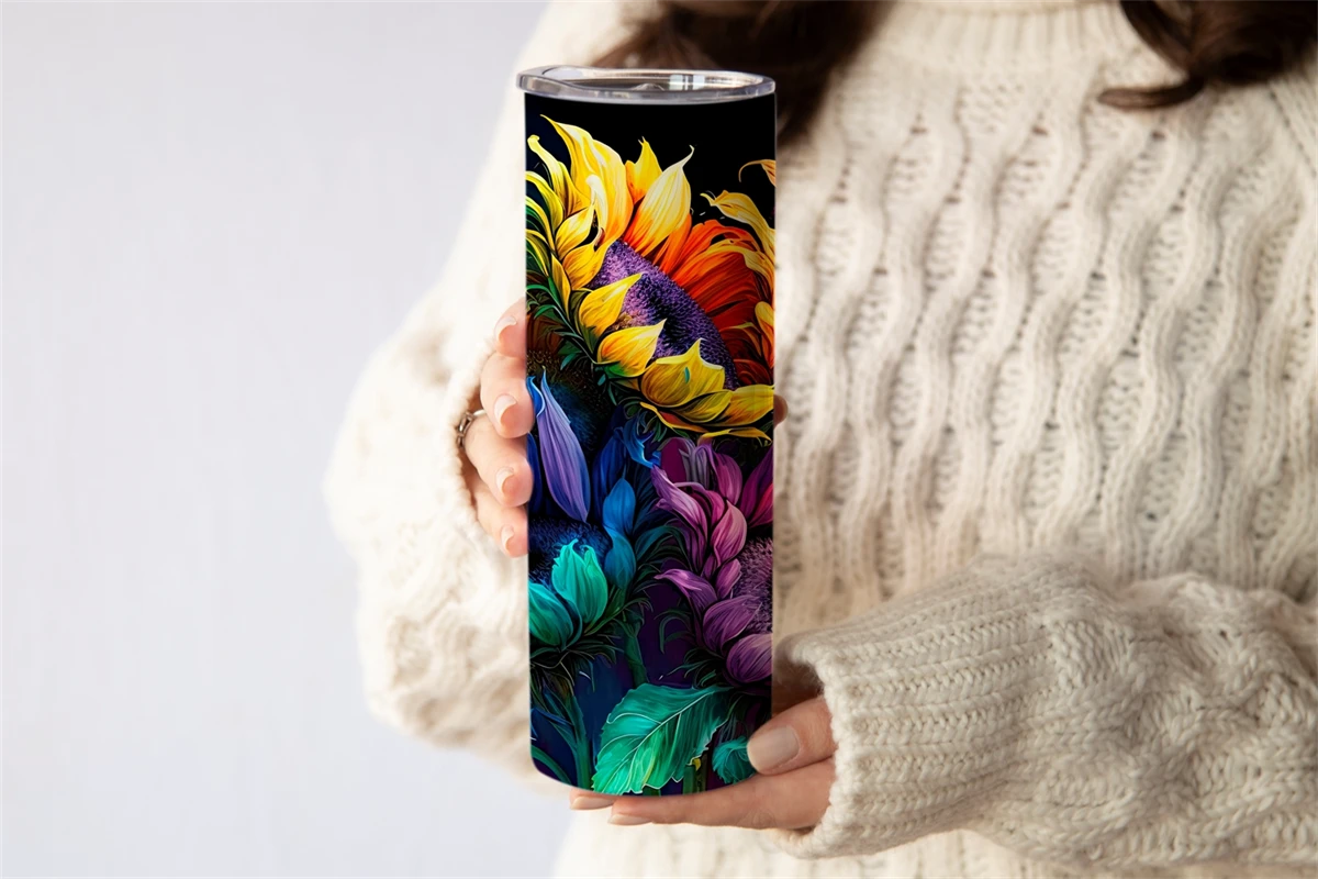 Sunflower sublimation tumbler wrap 20 Oz, sunflower tumbler design, rainbow sunflower tumbler sublimation.