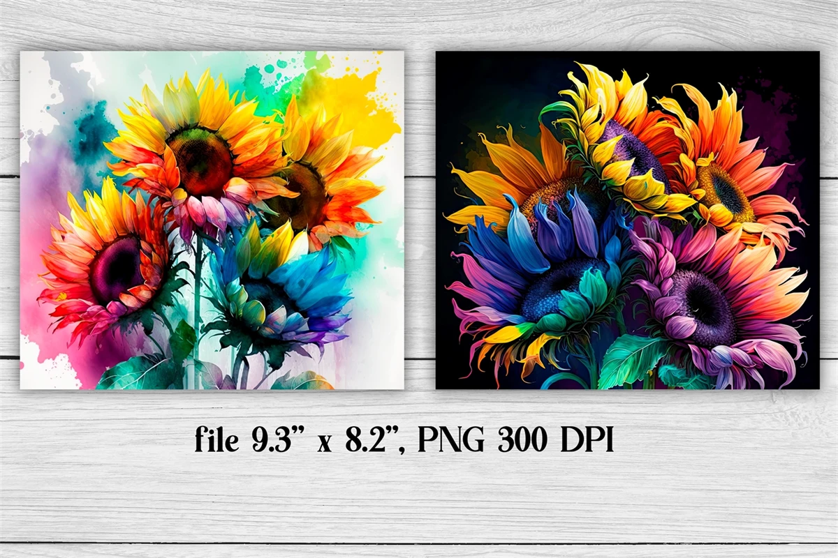 This 2 rainbow sunflower tumbler design comes in the following formats: