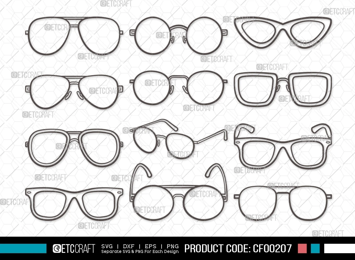 Elevate your creative projects with our Sunglass Outline Aviators Eyewear Geek-Nerd Eyeglasses Spectacle Frame SVG Cut File Bundle. Whether you're a fashion enthusiast, a designer, or someone with a passion for eyewear, this versatile digital design collection is a must-have for your creative toolbox.