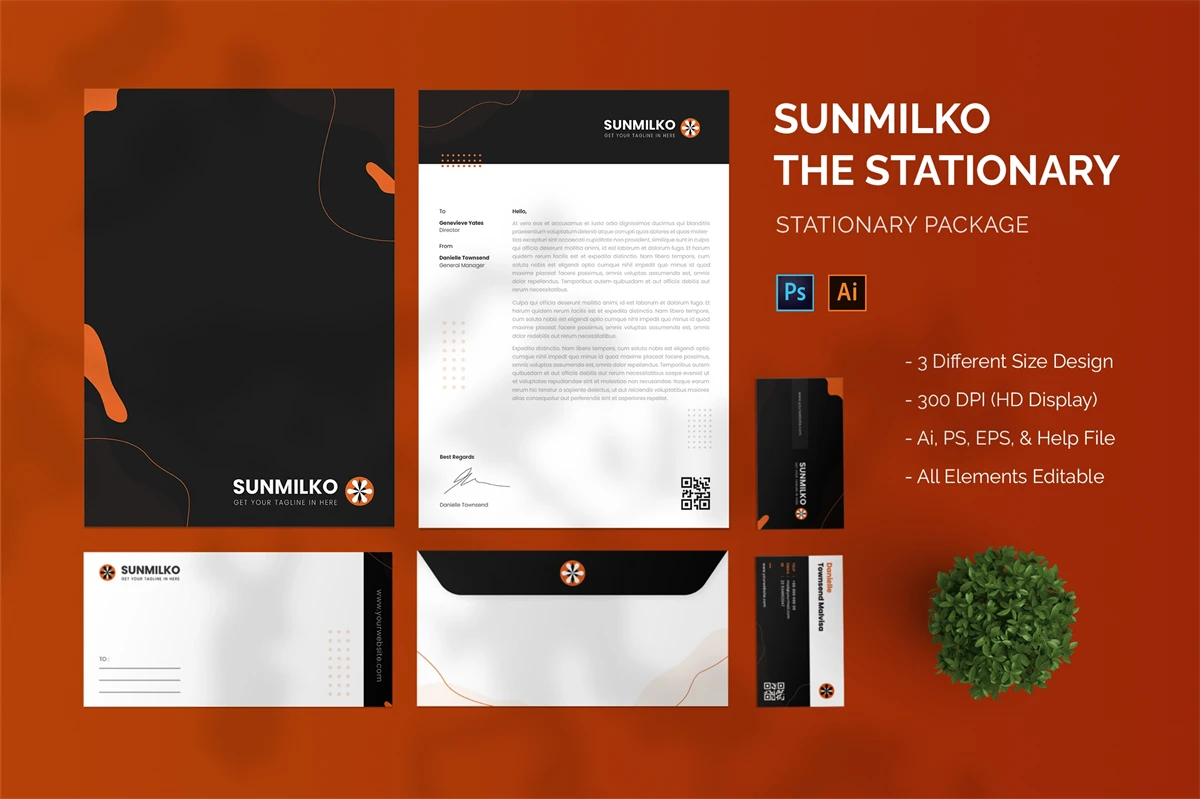Sunmilko - Stationary. This template is great for your business and this design will make your interested, elegant, and easily editable according to your needs. I hope you enjoy for this stationary.