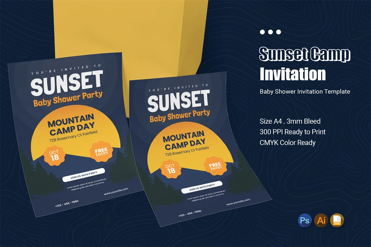 **Sunset Mountain Camp Baby Invitation**