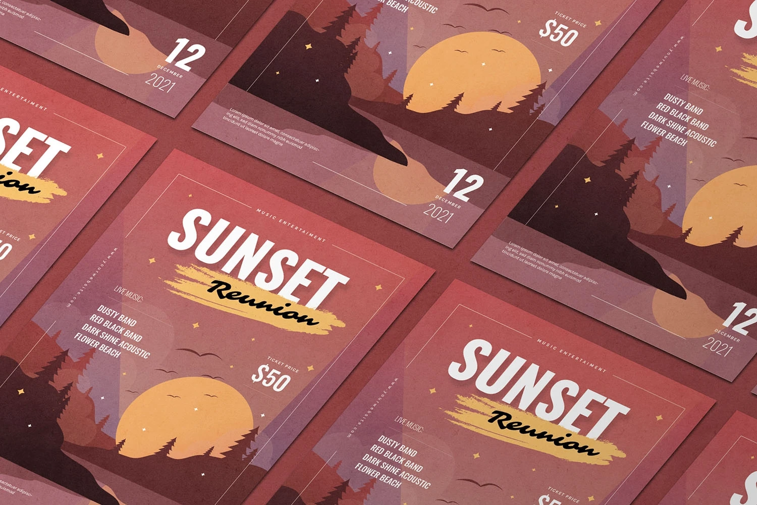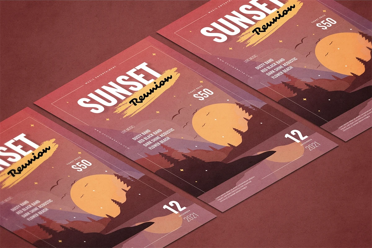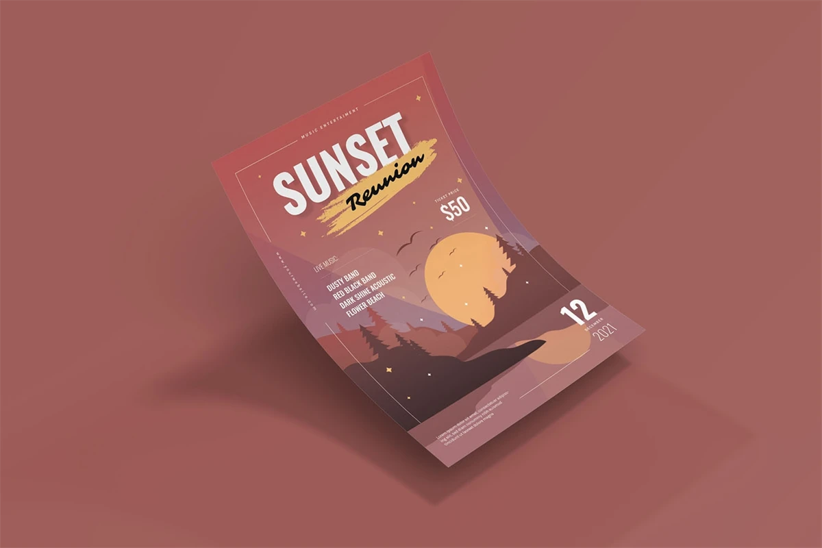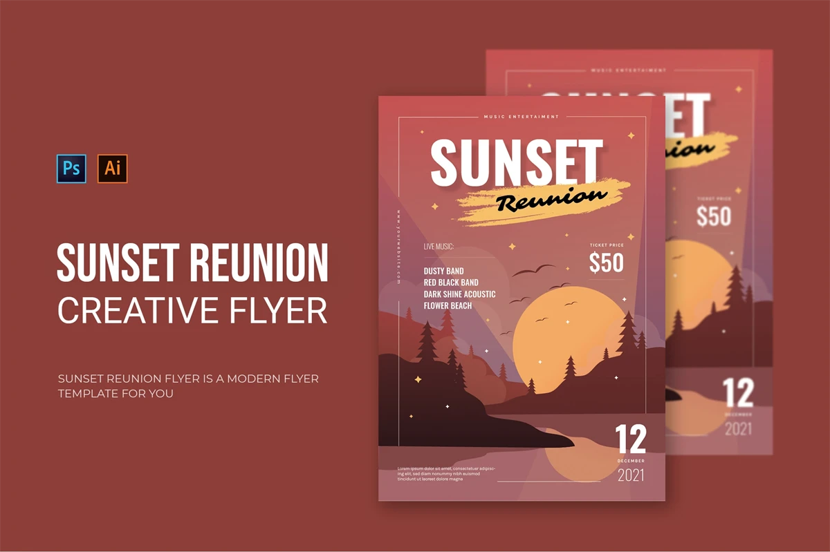 Sunset Reunion - Flyer. This Flyer template is designed for your company's business needs. very clean and elegant, and also easily edited and adjusted to your liking
