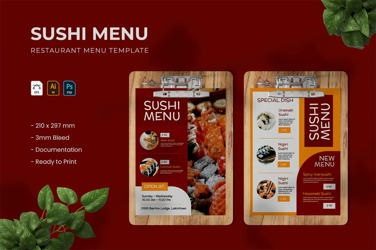 Menu Restaurant Template is a menu template for people who sell, business, or run a food-related business. The layout makes it easy to find the menu you want. Too many choices can make customers feel overwhelmed, so its better to limit the number of choices, colors, and other design elements so that customers can easily scan and order items.