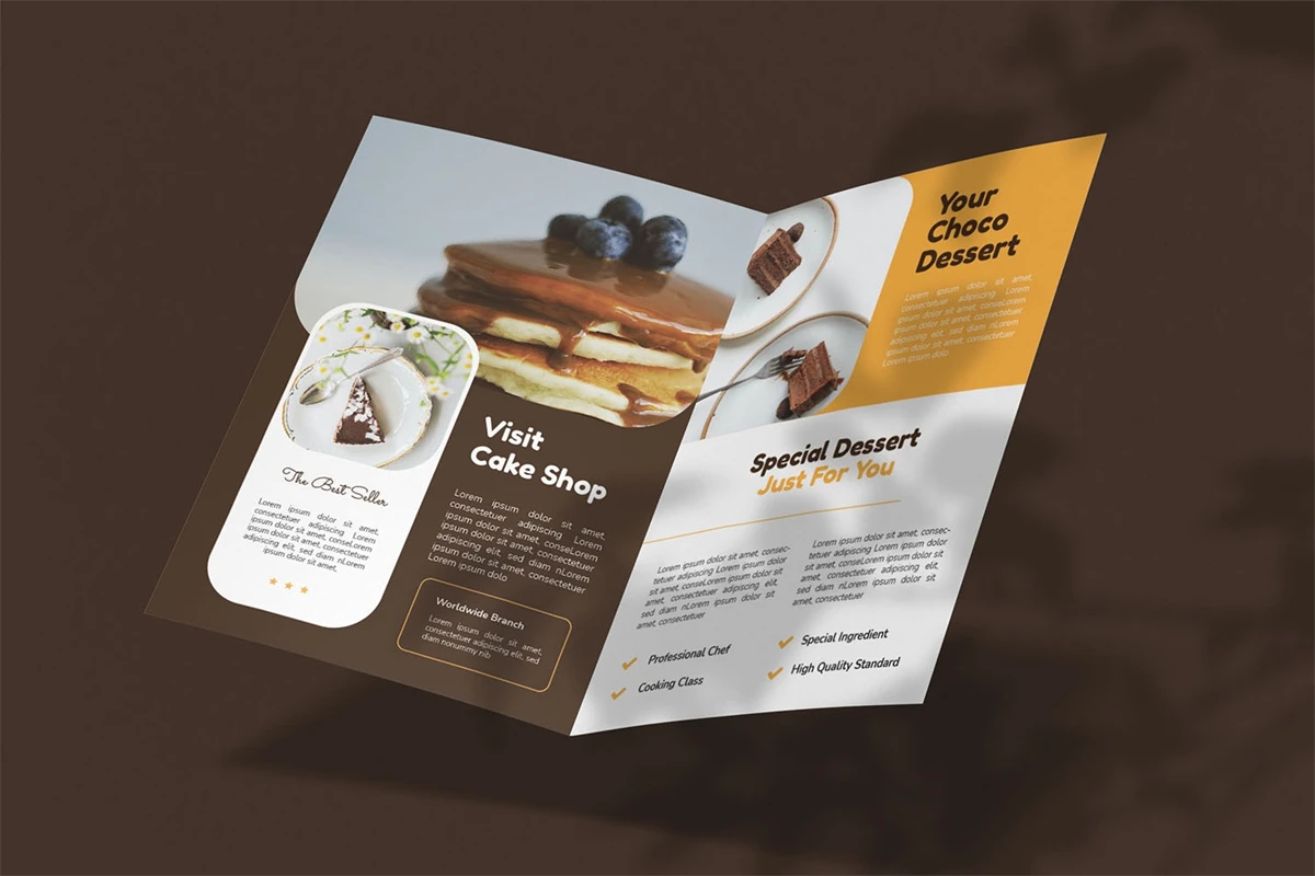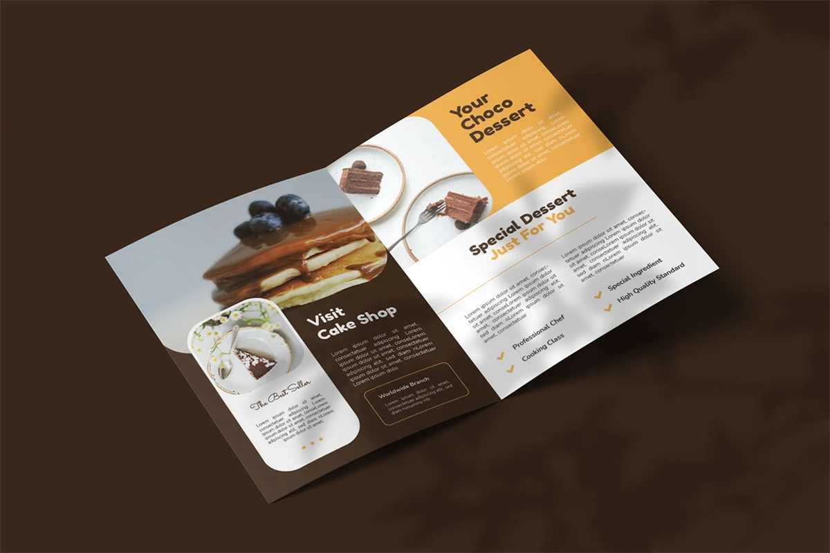 eet Chocolate - Bifold Brochure We present this Bifold Brochure for you, simple and very elegant, and this Bifold Brochure is suitable for all types of your business, made with Adobe InDesign (INDD), Adobe Photoshop (PSD) and Adobe Illustrator (AI), very easy to customize, Hope you Like it, dont forget to rate, Thanks.