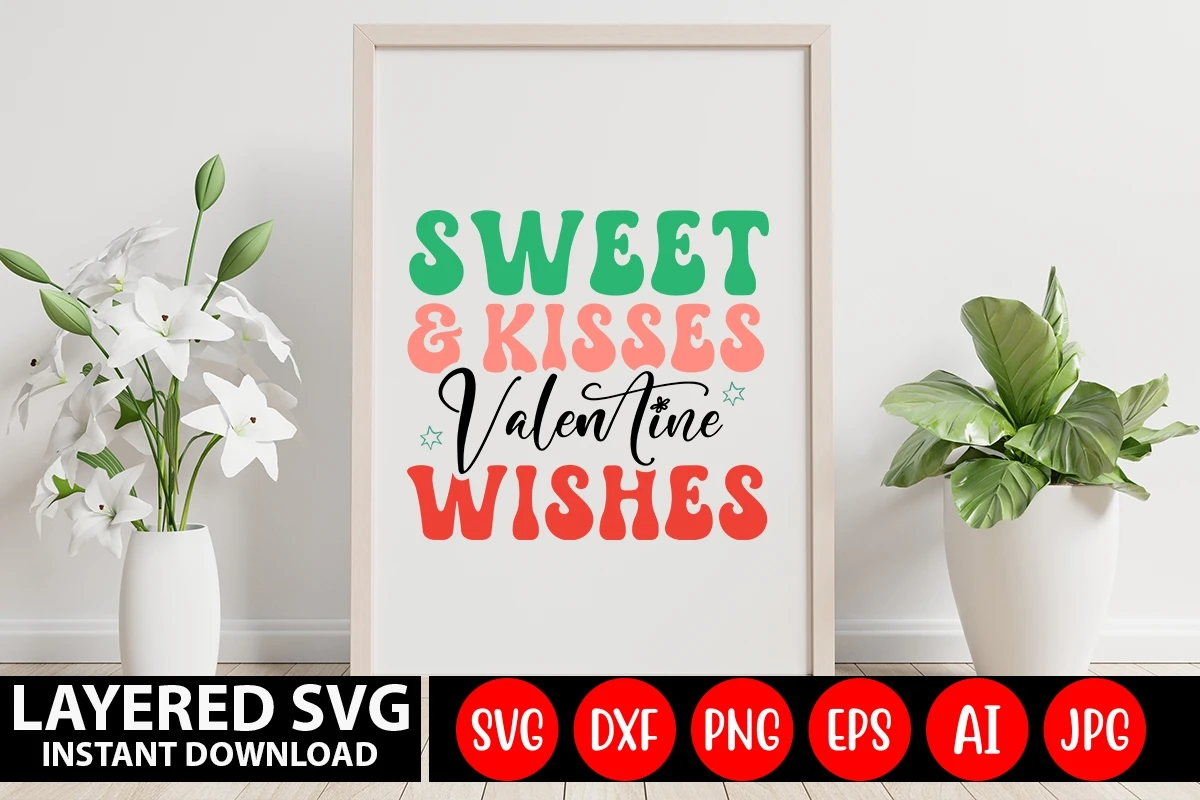 Sweet & Kisses Valentine Wishes Retro SVG Design