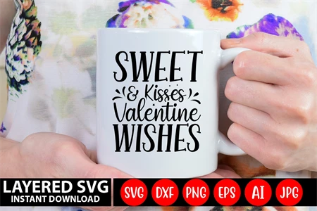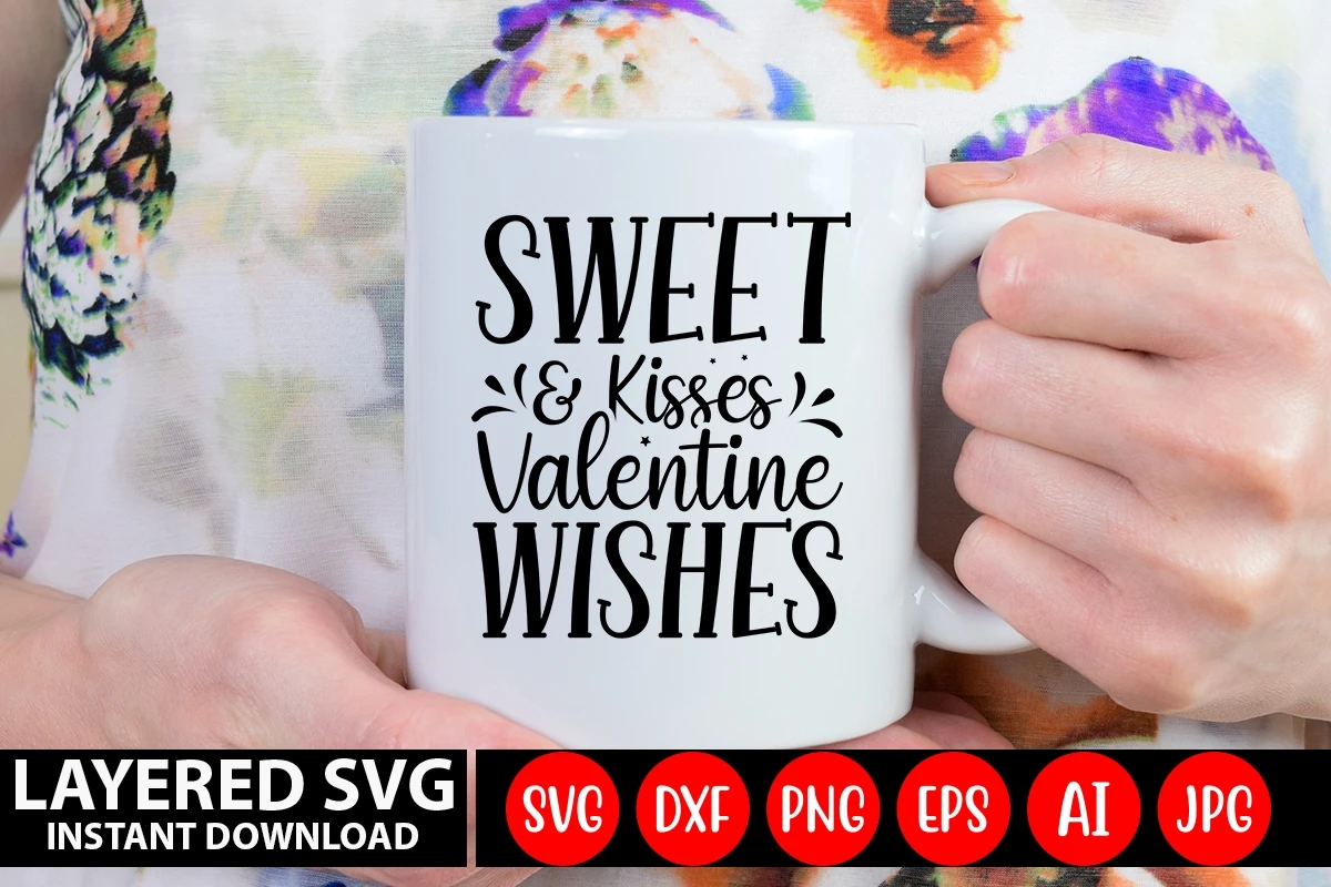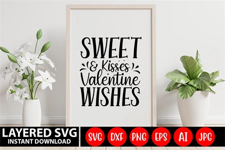 Sweet & Kisses Valentine Wishes SVG Design, SVG Cut File