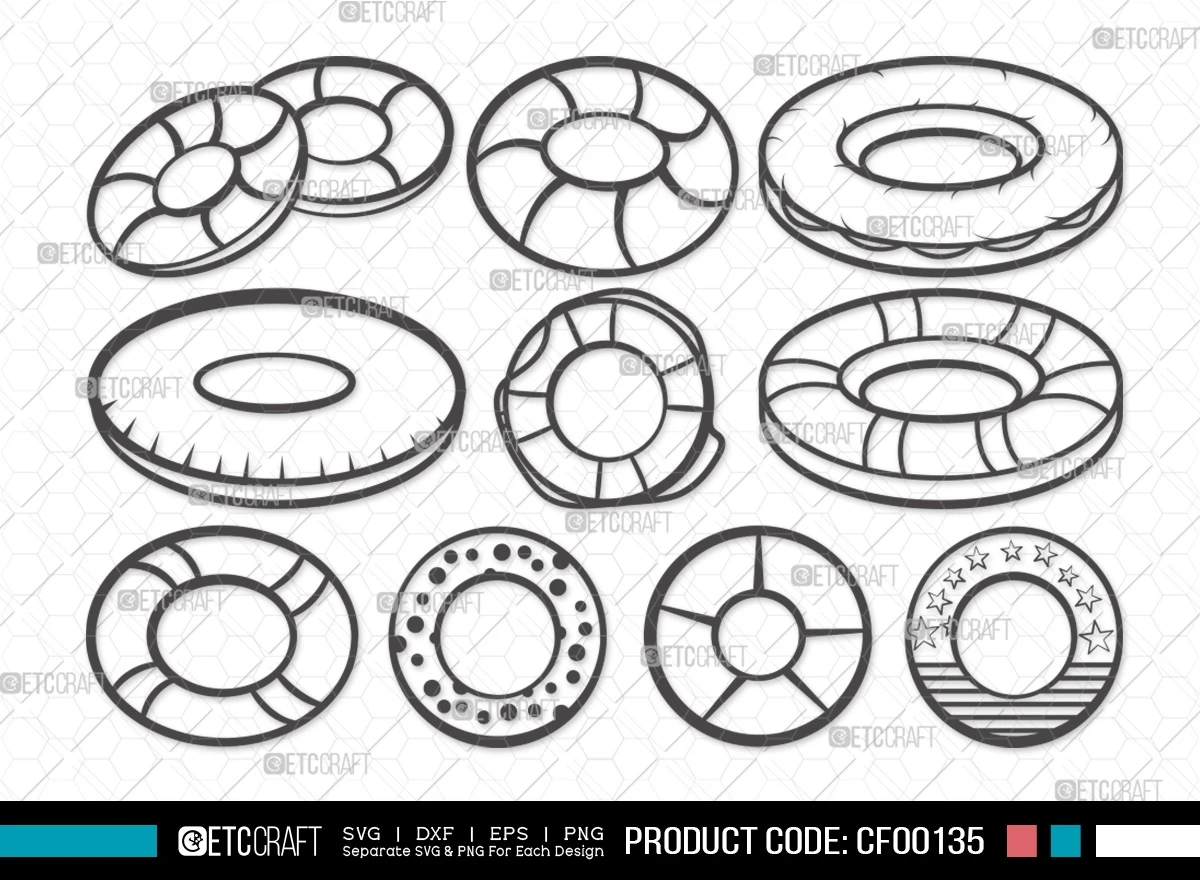 Dive into a world of summer fun and safety with our Swim Ring Outline Lifesaver Buoy Summer Pool SVG Cut File Bundle. This collection features a delightful array of outline clipart designs inspired by swim rings and lifesaver buoys, perfect for adding a touch of sunny playfulness and safety awareness to your summer-themed crafts. Whether you're a pool enthusiast, a beach lover, or a crafting maven, this bundle provides the perfect tools to create designs that embody the spirit of a vibrant summer.