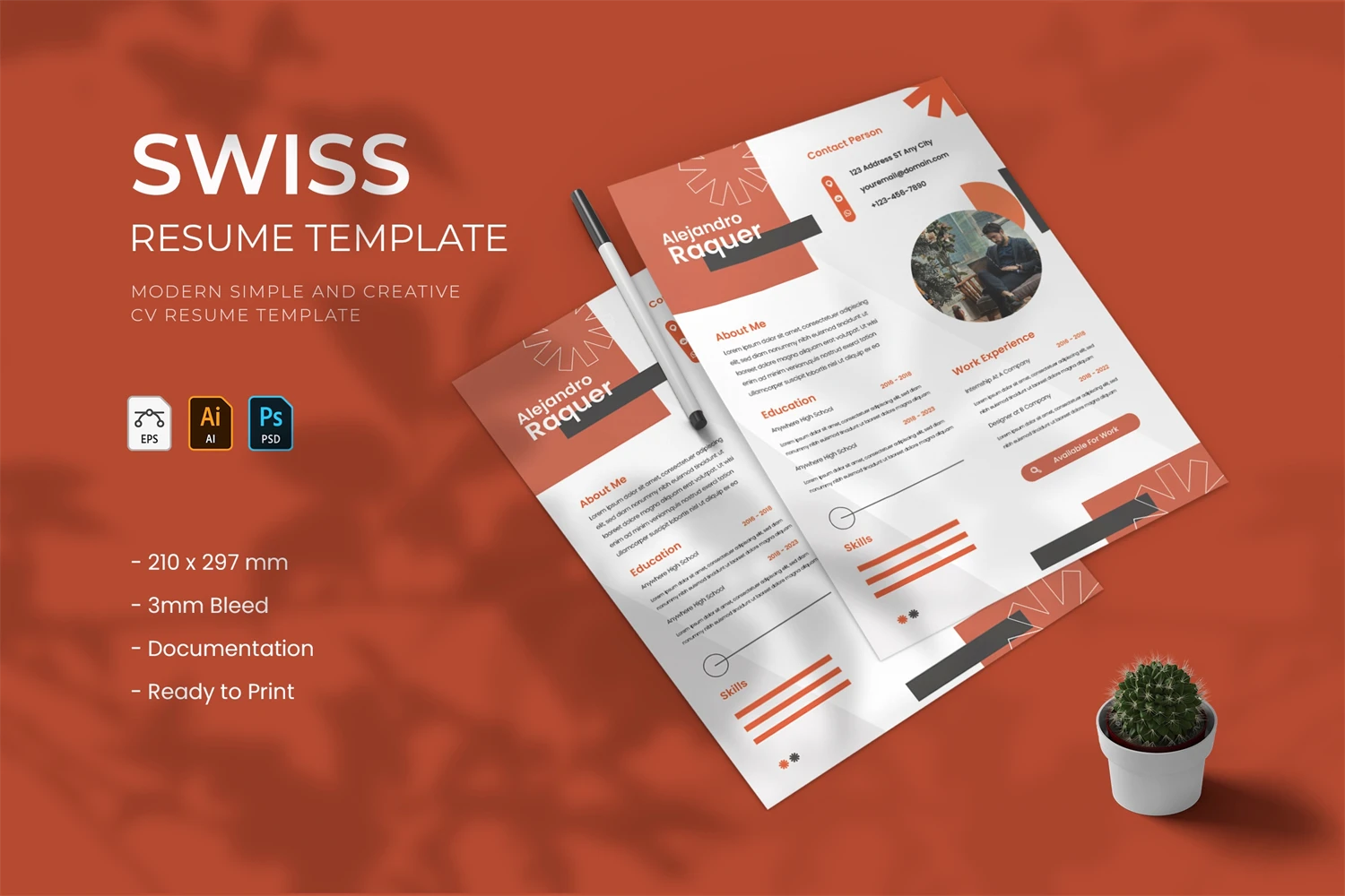 creative resume and cover letter template that will make your resume stand out from the hundreds of resumes employers get. It gives you the information you need, such as your name, contact information, social media links, education, experience, skills and interests. Also, it comes with three different color schemes.