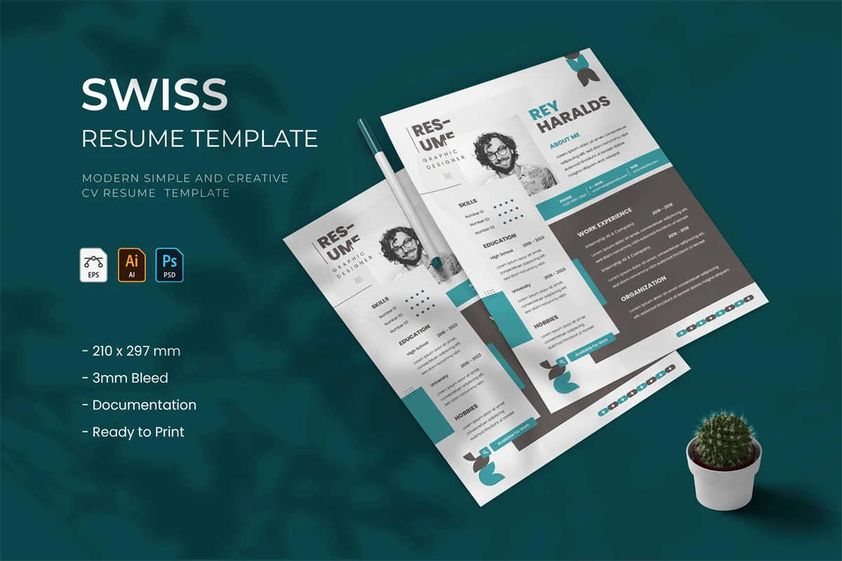creative resume and cover letter template that will make your resume stand out from the hundreds of resumes employers get. It gives you the information you need, such as your name, contact information, social media links, education, experience, skills and interests. Also, it comes with three different color schemes.