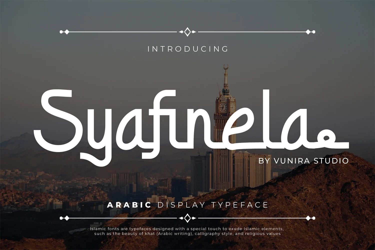 **Syafinela - Arabic Font** with a calligraphy style, So beautiful on invitation like greeting cards, branding materials, business cards, quotes, posters, and more!
